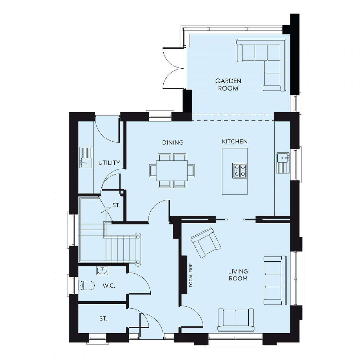 The Portland is a stylish four-bedroom home designed for modern family living. Featuring an open-plan kitchen, dining, and living area, complemented by a garden room and a generous living room, it provides flexible space for both relaxing and entertaining. A detached garage adds practicality to this thoughtfully designed home.