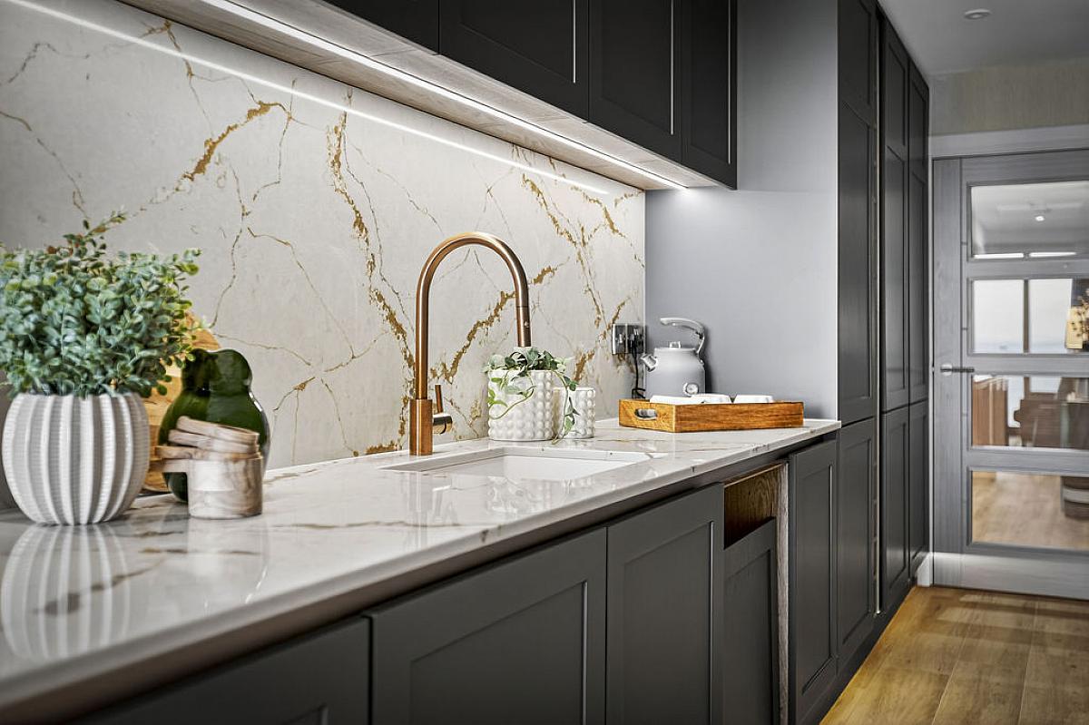 The site is formerly the old home of Roughans newsagents and cafe, also the Harbour Café and was the former home of the old Palladium Cinema which first opened in 1934. The owners of Roughans are delighted to be welcomed back to the ground floor of the Six West building and to see the transformation of this landmark site, where their family business began in 1952. Throughout the rest of the building, there is a mix of one and two bed apartments, served by three individual lifts. All of the apartments offer private landings, luxury kitchens for entertaining, wonderful living spaces, with glorious west facing, full height windows and doors, to make sure that the famous view from the Promenade is captured with every day living and night time lounging.