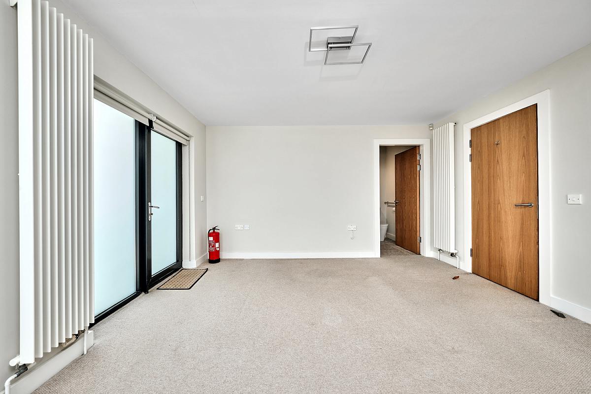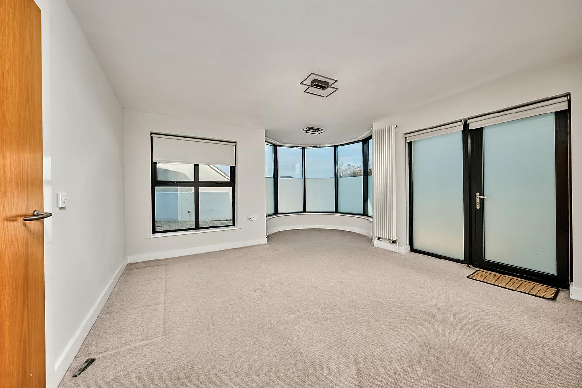 With vertical radiator, feature glass Tourette and patio door with glass panels leading to decked terrace area which leads to private screened garden. Views across Convent, Portstewart Strand, Donegal Headlands and Mussenden Temple.