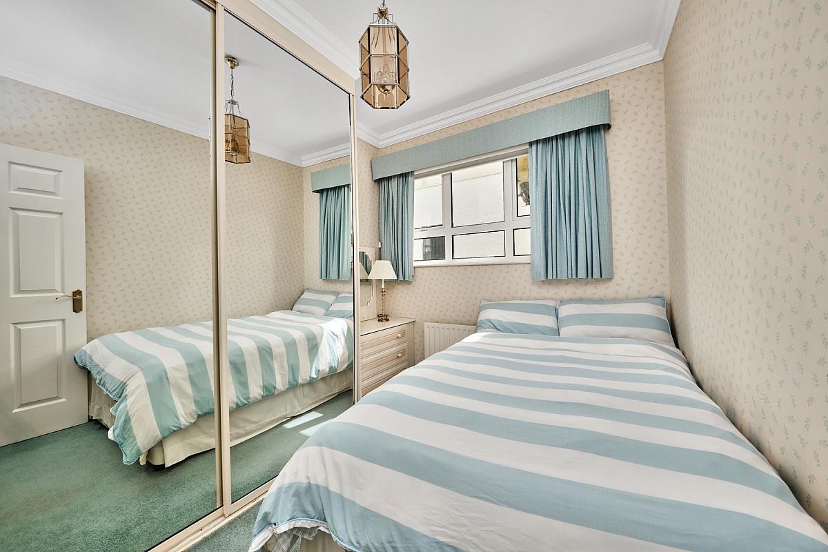 With built in furniture consisting of two double wardrobes, one single wardrobe, dressing area with mirror above, chest of drawers below and overhead storage and cornicing.