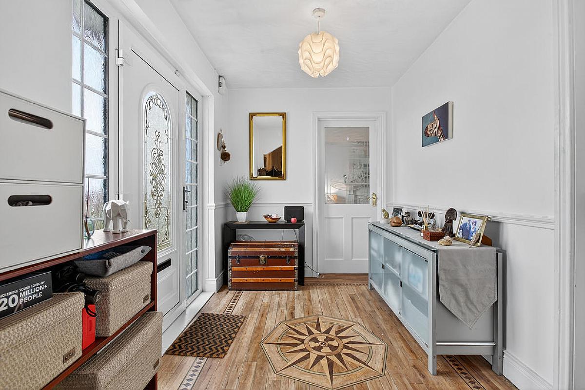 With cloaks cupboard, hot press, access to roof space, dado rail and 'Amtico' flooring.