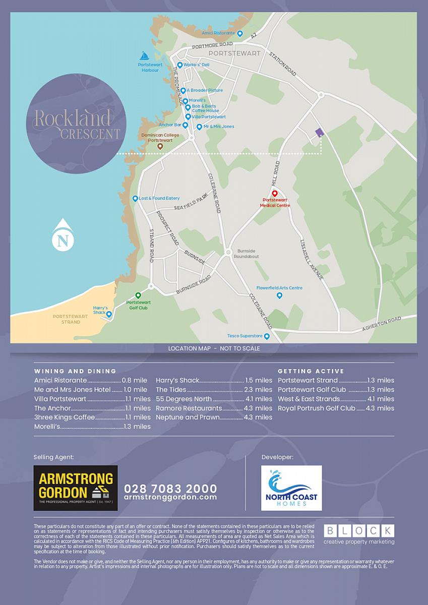 Approaching Portstewart from Coleraine on the Station Road, take your first left at the roundabout onto the Mill Road. Take your second left into Rockland Drive and second left into Rockland Crescent. Site 16 will be the fourth semi detached house situated on your right.