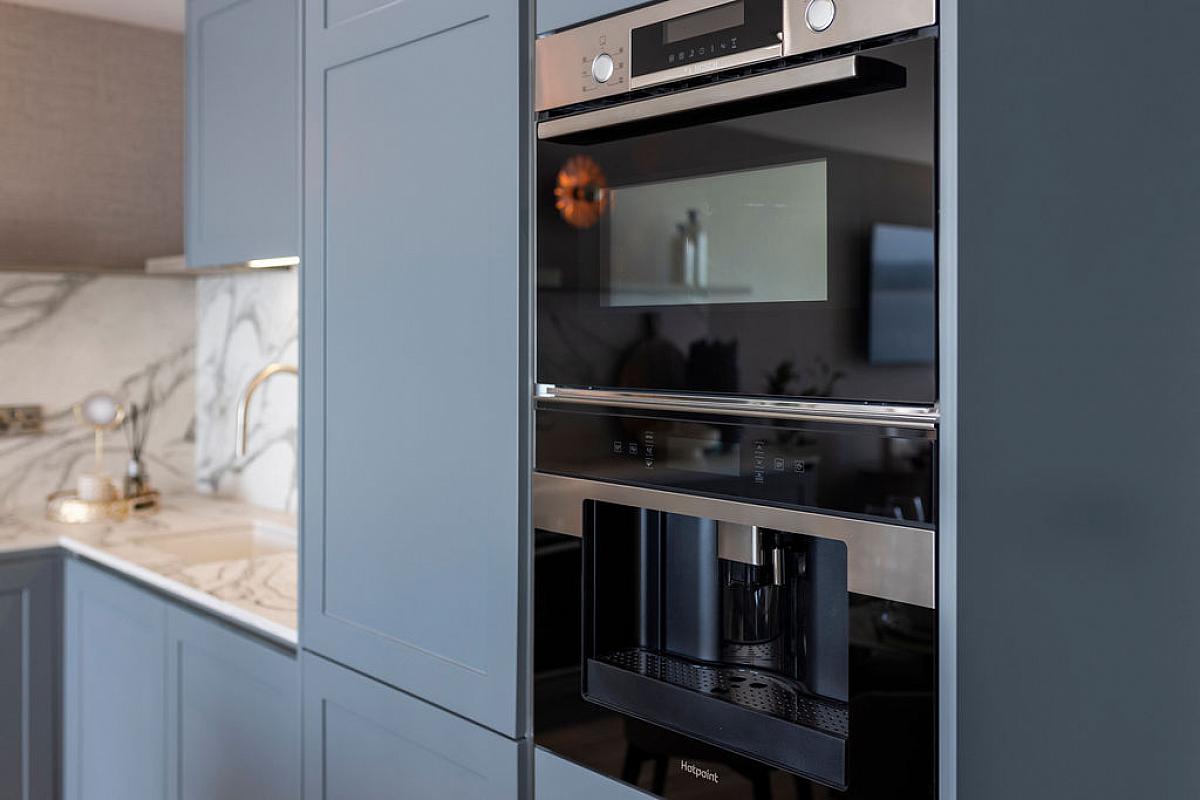 With 'Shock' sink unit with shower hose style tap set in Silestone worktops, high and low level units with Silestone splashbacks, feature strip under unit lighting, integrated fridge freezer, integrated 'Bosch' oven, 'Hotpoint' ceramic hob and stainless steel extractor fan above, integrated 'Hotpoint' coffee machine, integrated 'Bosch' eye level oven, integrated dishwasher, saucepan drawers, feature wall lights, recessed lighting, tiled floor and feature picture window and sliding patio doors leading to composite decked balcony with panoramic views across Atlantic Ocean, Crescent, Dominican Covent, Portstewart Promenade and Harbour.