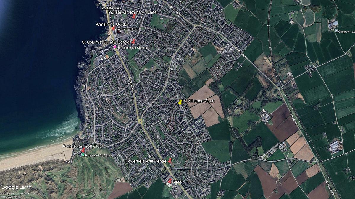 Approaching Portstewart on the Coleraine Road take your third left at the Burnside roundabout onto the Mill Road. Take your fourth right at the Medical Centre onto Lissadell Avenue. Take your fifth right into Millstone Court and No 14 will be located at the bottom end straight in front of you.
