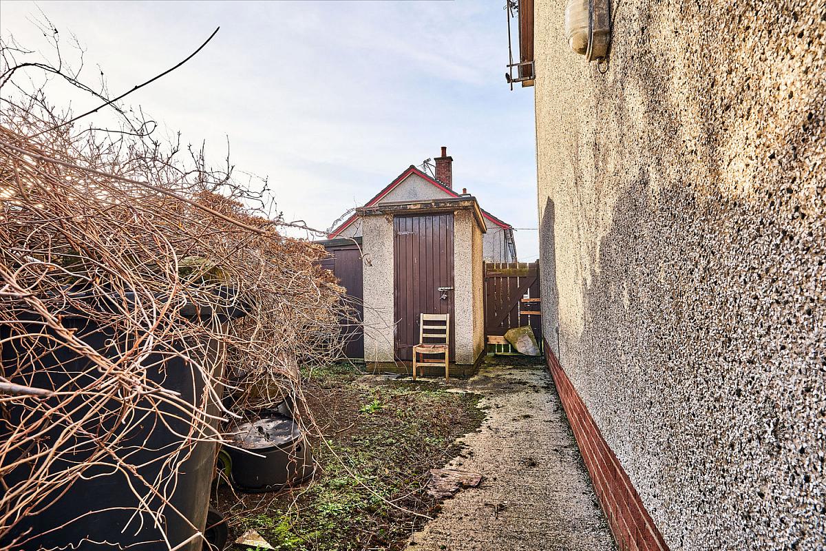 Garden area to rear is fenced in and fully paved with concrete pathway surrounding the property. Boiler house and shed to side. Light to front and rear. Tap to rear. Garden to front is fenced in and laid in lawn with concrete path leading to front door.