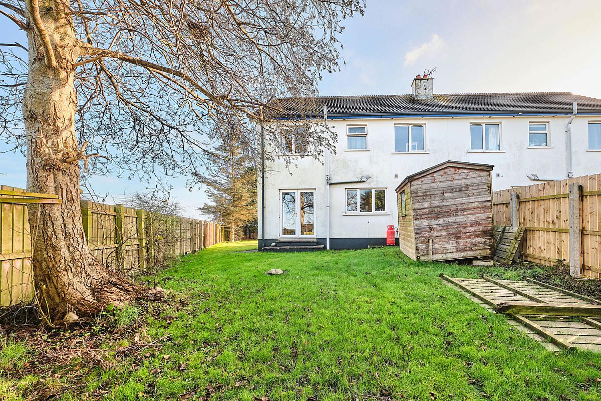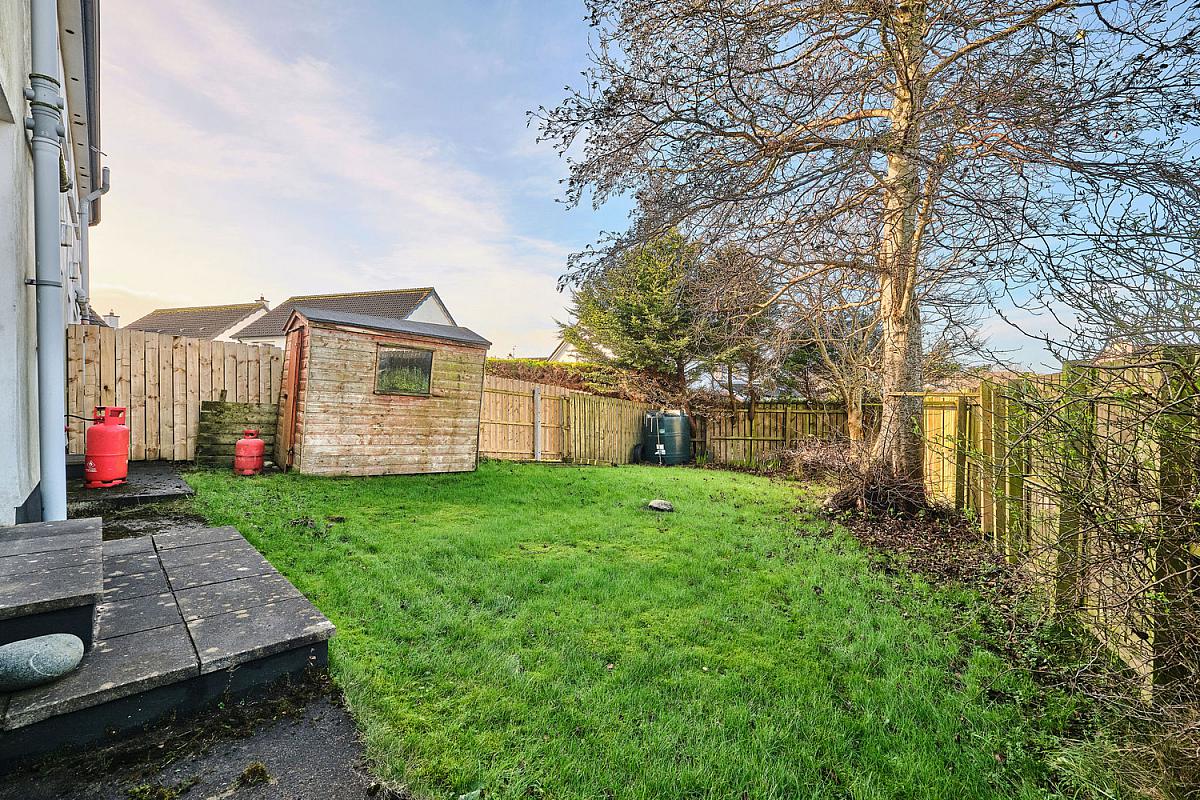Screened driveway leading to side and rear of property. Garden to front, rear and side is fully enclosed and laid in lawn with mature trees. Light to front and rear. Shed and tap to rear.