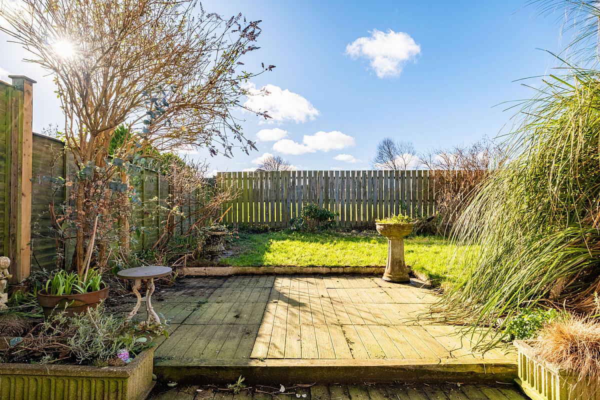 Garden to rear is fenced in and laid in lawn with decked and screened areas with concrete path surrounding property. Established plants, shrubbery and trees. Light to front and rear. Tap and summer house 16'9 x 9'1 to rear.