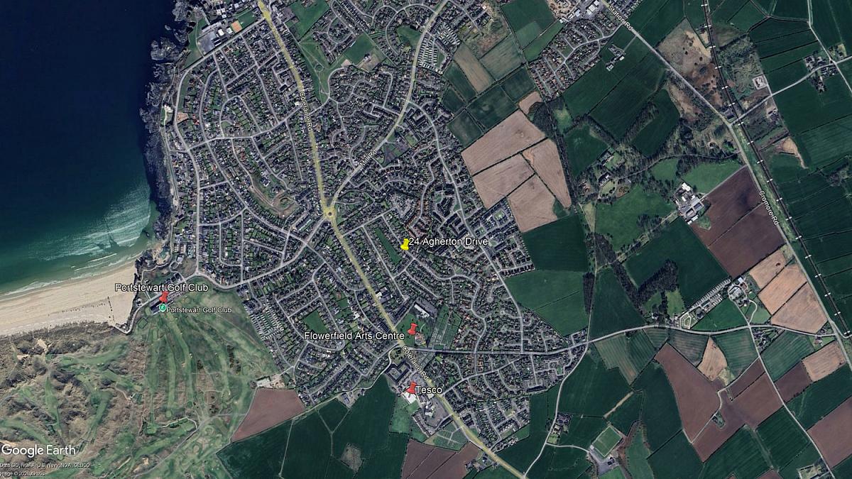 Approaching Portstewart on the Coleraine Road, just before the Burnside roundabout turn right into Flowerfield Road. Take your second right into Agherton Drive and No 24 will be situated on your right hand side.