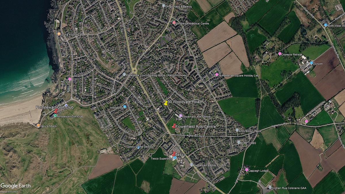 Approaching Portstewart on the main Coleraine Road, take the first turn on the right into Fairfield Road after the Texaco Petrol Station and before Burnside roundabout. Take your first right into Woodvale Road and No 30 will be located on your right hand side.