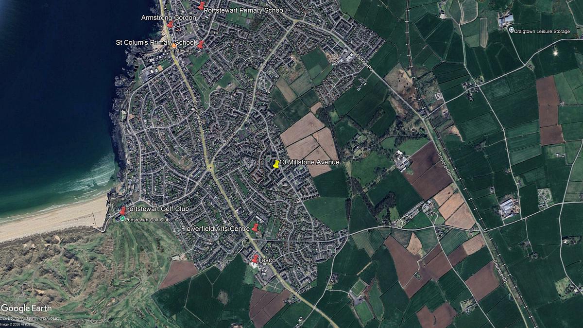 Approaching Portstewart on the Coleraine Road, turn right after Tesco at Flowerfield Arts Centre onto the Agherton Road. Take your third left onto Lissadell Avenue and then eighth left onto Millstone Avenue. No 10 will be located on your left hand side.