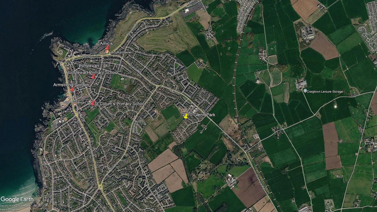 Approaching Portstewart from Coleraine on the Station Road, take your first left before the Supervalu Filling Station into Dunsuivnish Avenue. Take your third right into Glenn Park and No 10 will be located on your right hand side.