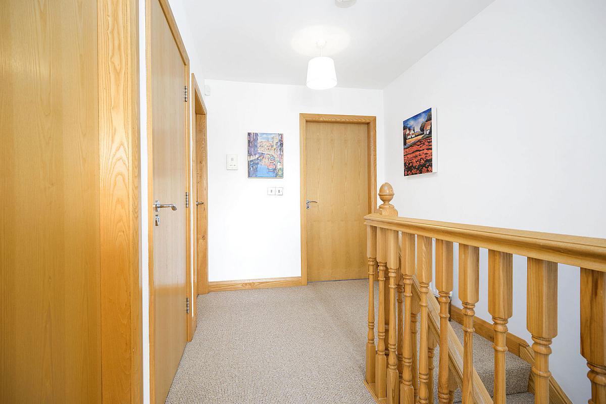 Ensuite off with w.c., wash hand basin, fully tiled walk in shower cubicle with electric shower, half tiled walls, heated towel rail, extractor fan and tiled floor. (The electric shower sources hot water from the hot tank).