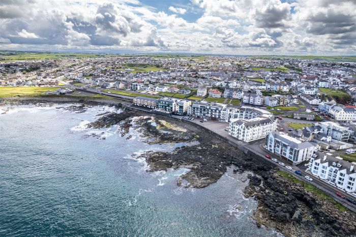 A superbly positioned 2 bedroom first floor apartment located in the heart of Portstewart. This is a compact apartment with open plan living with kitchen, lounge and dining area all mixed in together. This apartment has all the features for modern living. Located in the heart of Portstewart, the promenade and harbour are only a short walk away. Also at hand are many fine attractions including championship golf courses, Strand Beach, and many fine eating establishments. The selling agents strongly recommend early internal inspection of this beautiful apartment which would be ideal for a wide spectrum of potential purchasers.