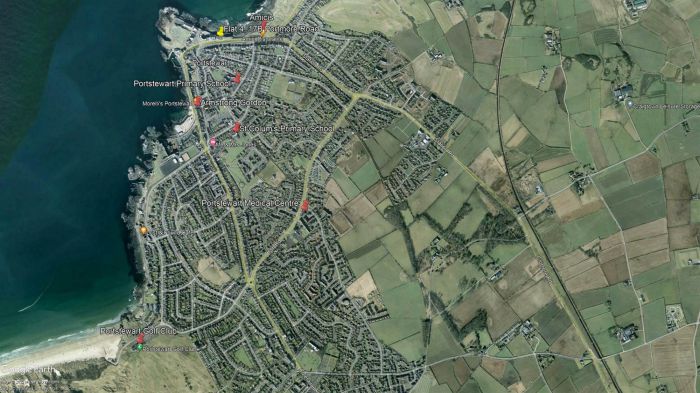 Approaching Portstewart from Coleraine on the Station Road, turn left at the bottom onto Portmore Road which connects with the Portrush Road. No. 17B will be on your right hand side before the corner of Atlantic Circle and beside the Angel Wash Dry Cleaning Shop.