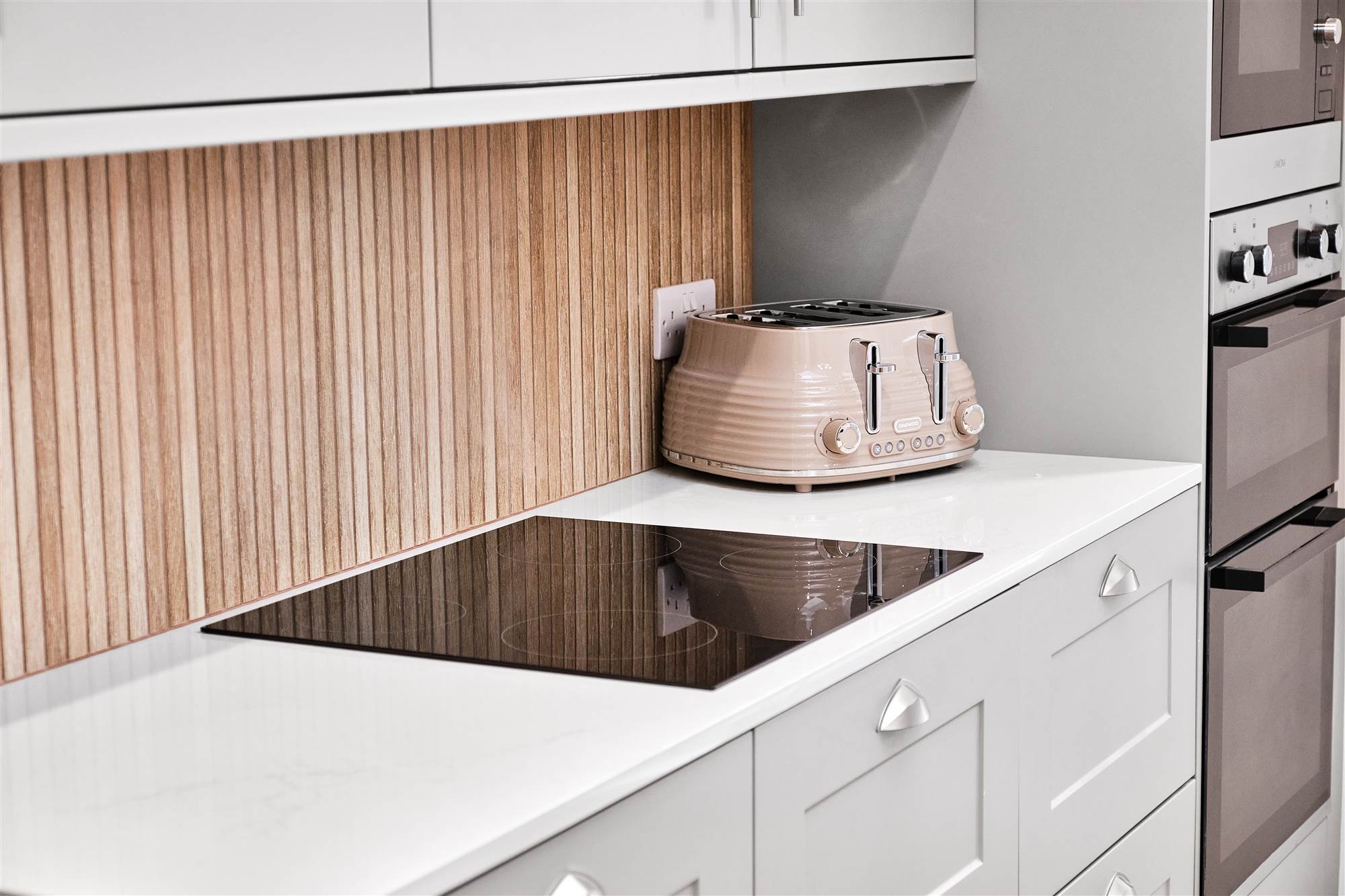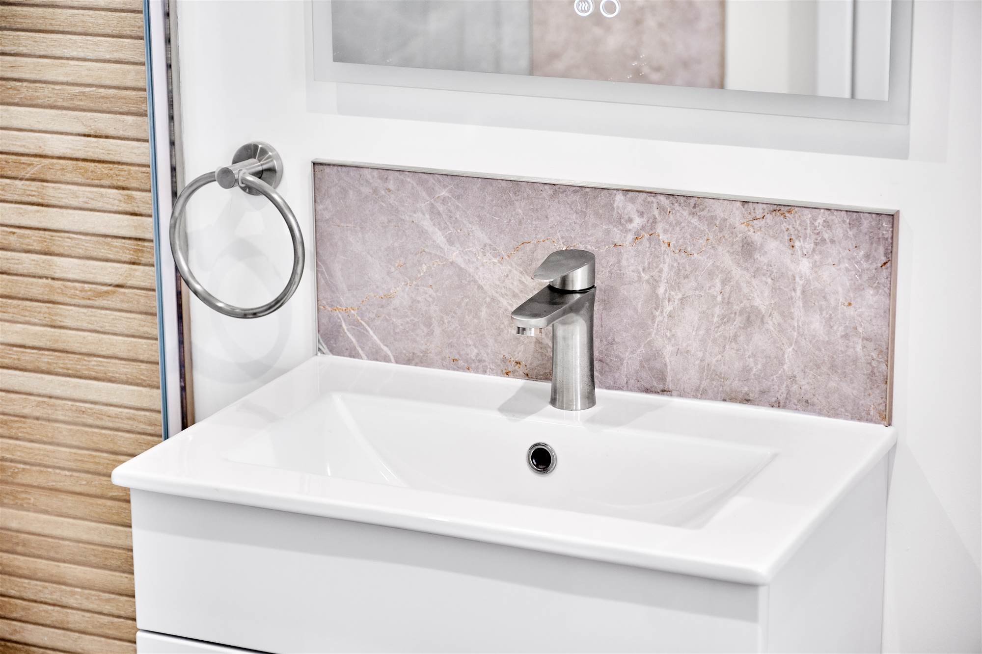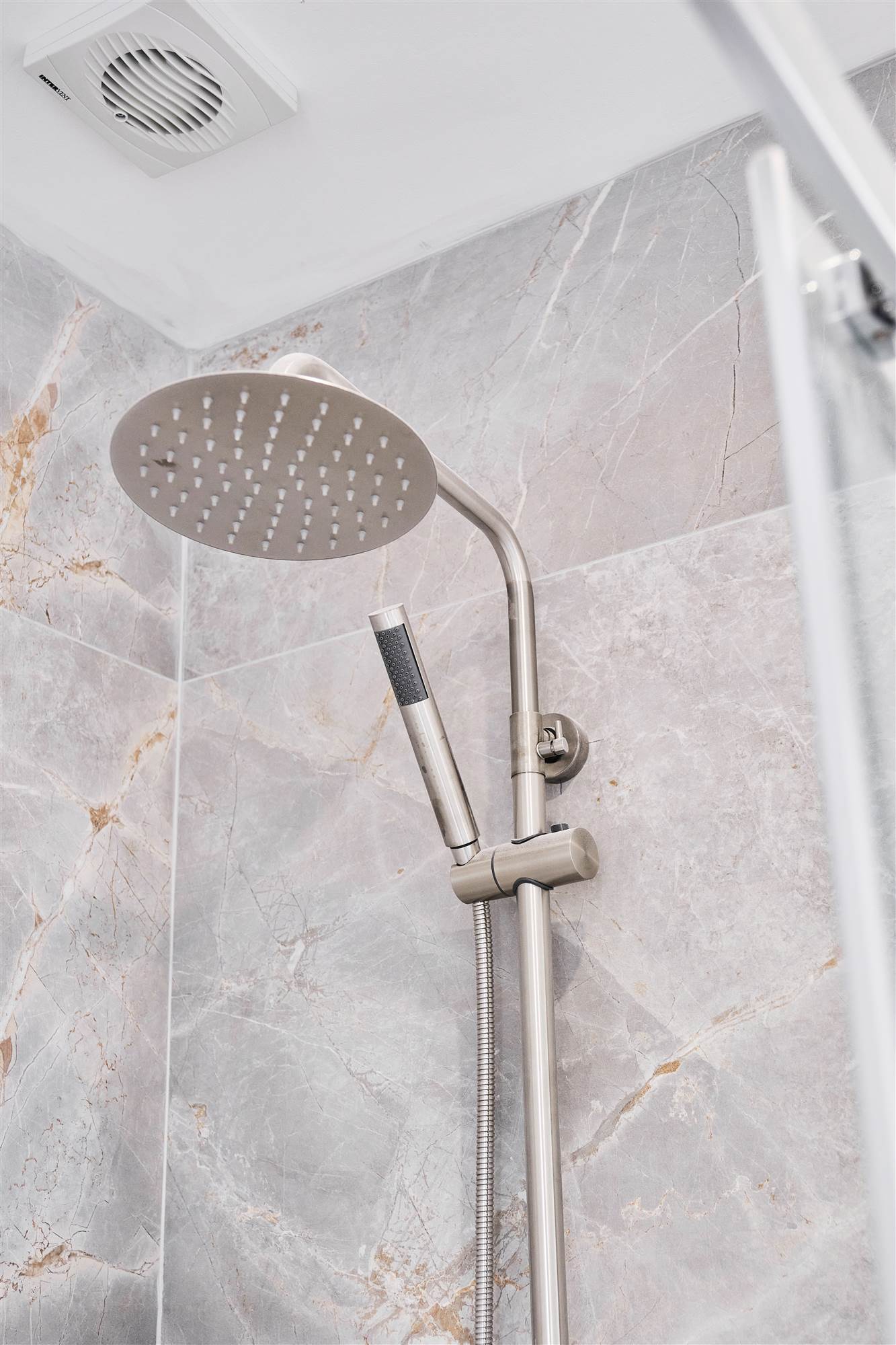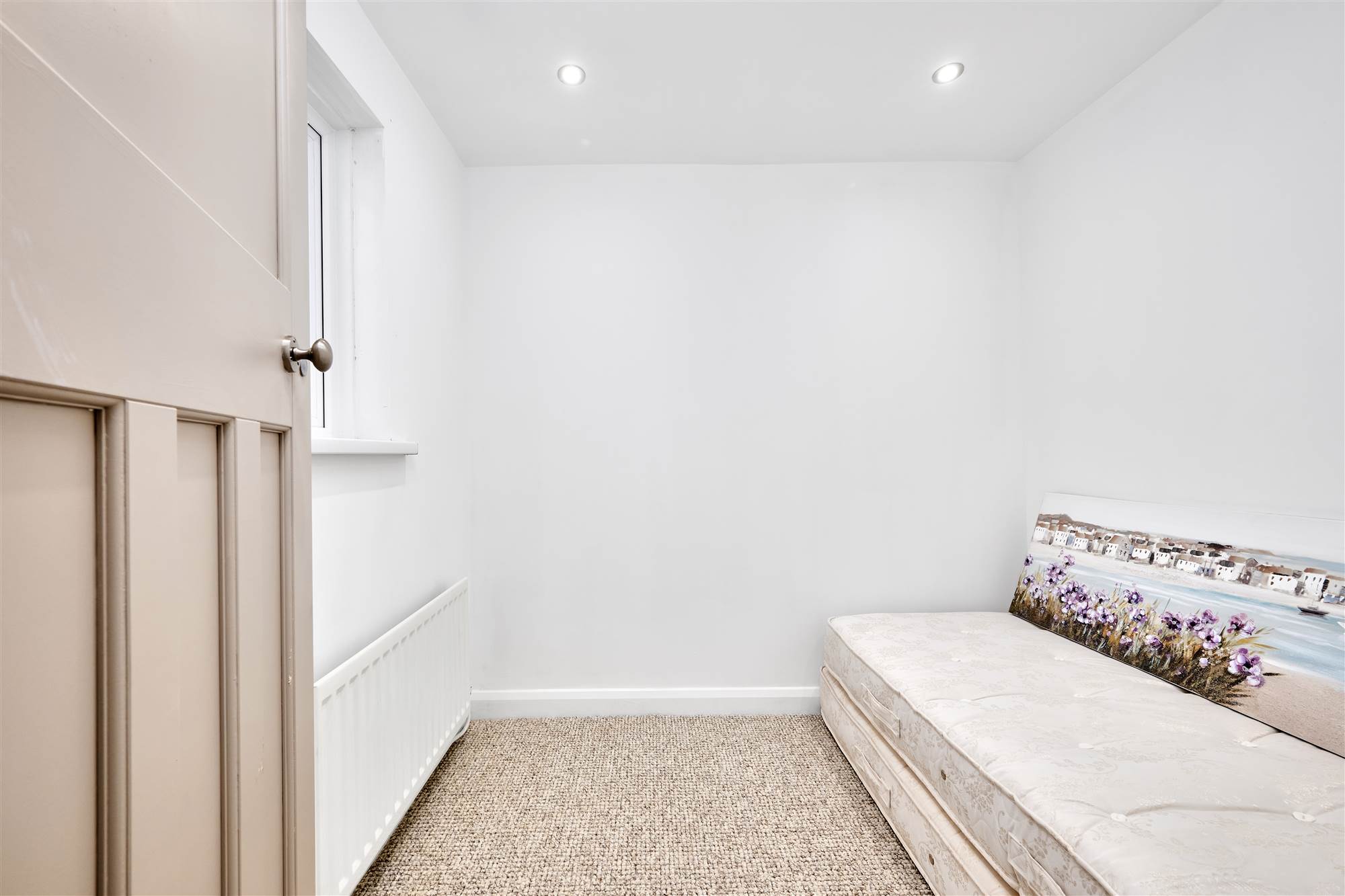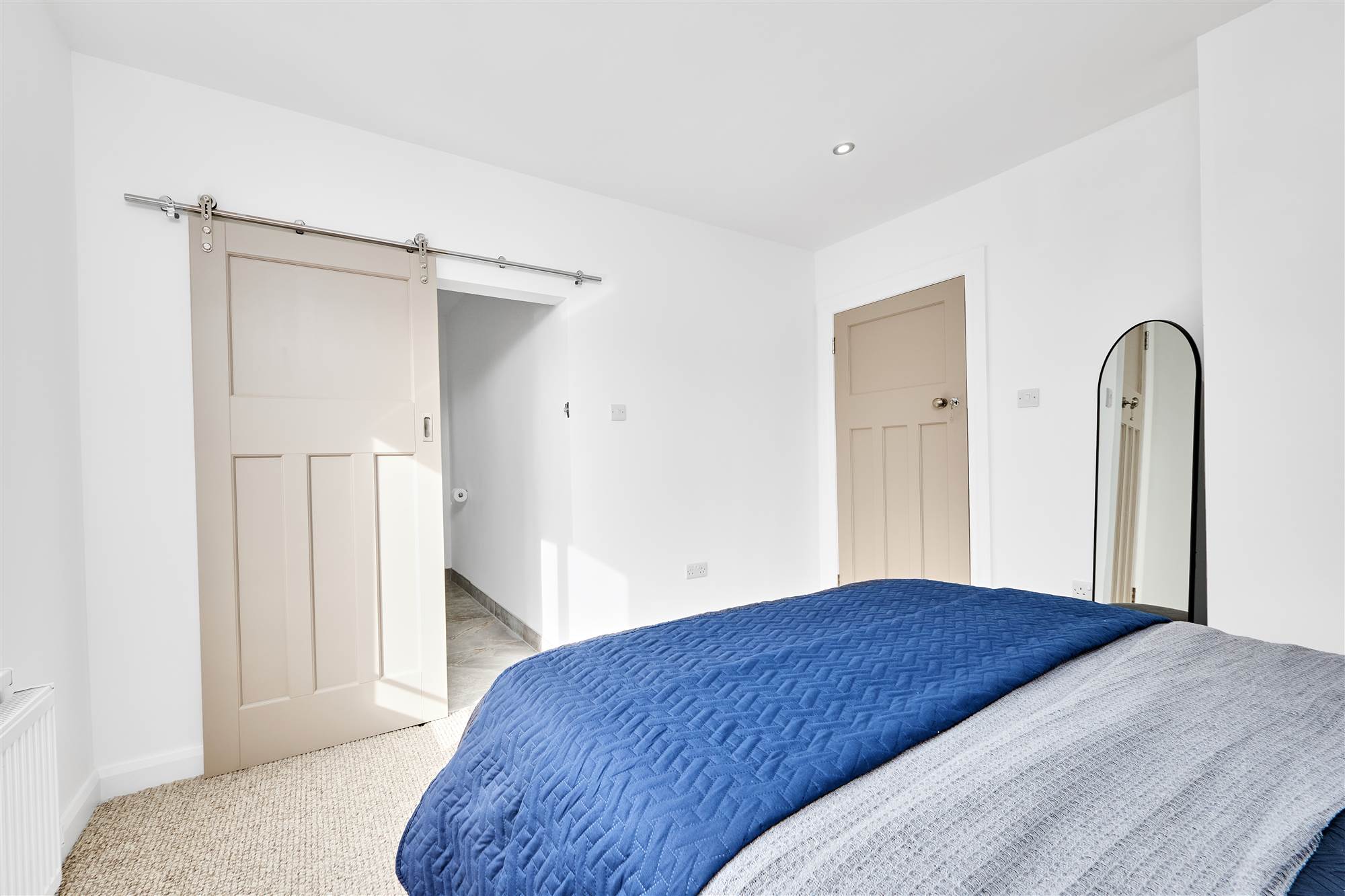 With w.c., wash hand basin with tiled splashback, storage below, fully tiled walk in shower cubicle with mains rainfall shower head, additional telephone hand shower, extractor fan, recessed lighting and tiled floor.
