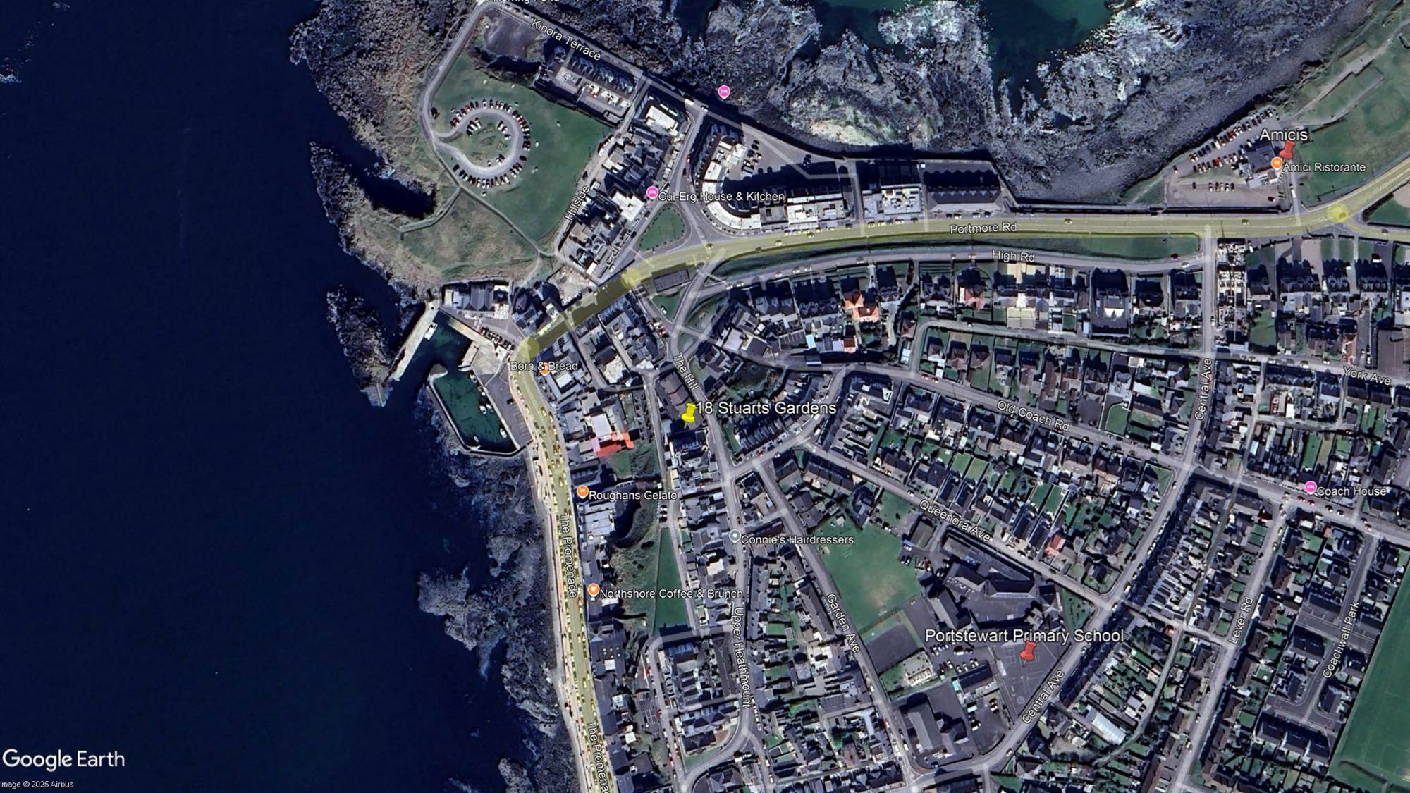 Approaching Portstewart from either Coleraine or Portrush, drive past Amici Italian restaurant on the Portmore Road. Take your second left onto The Hill opposite Victoria Terrace. Take your second right into Stuarts Gardens then first left. The apartment block will be adjacent to the Promenade.