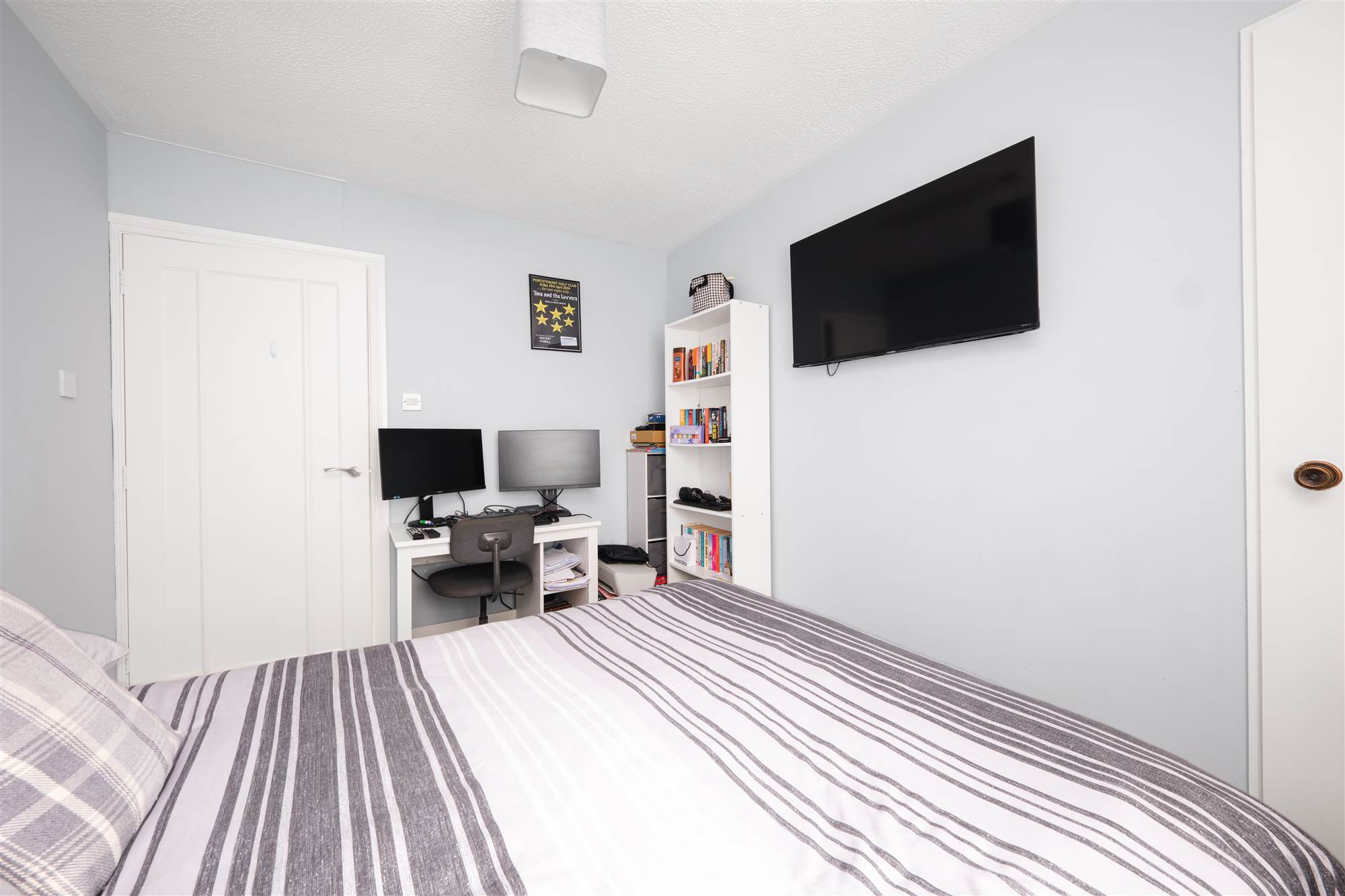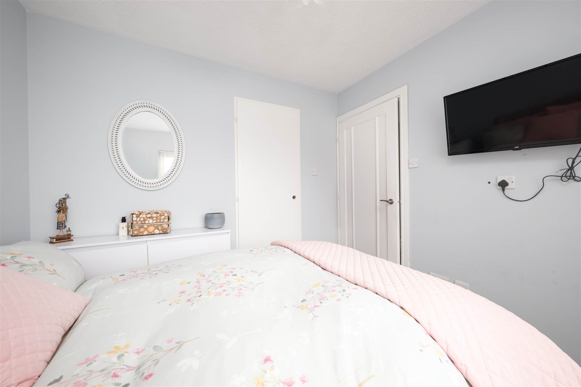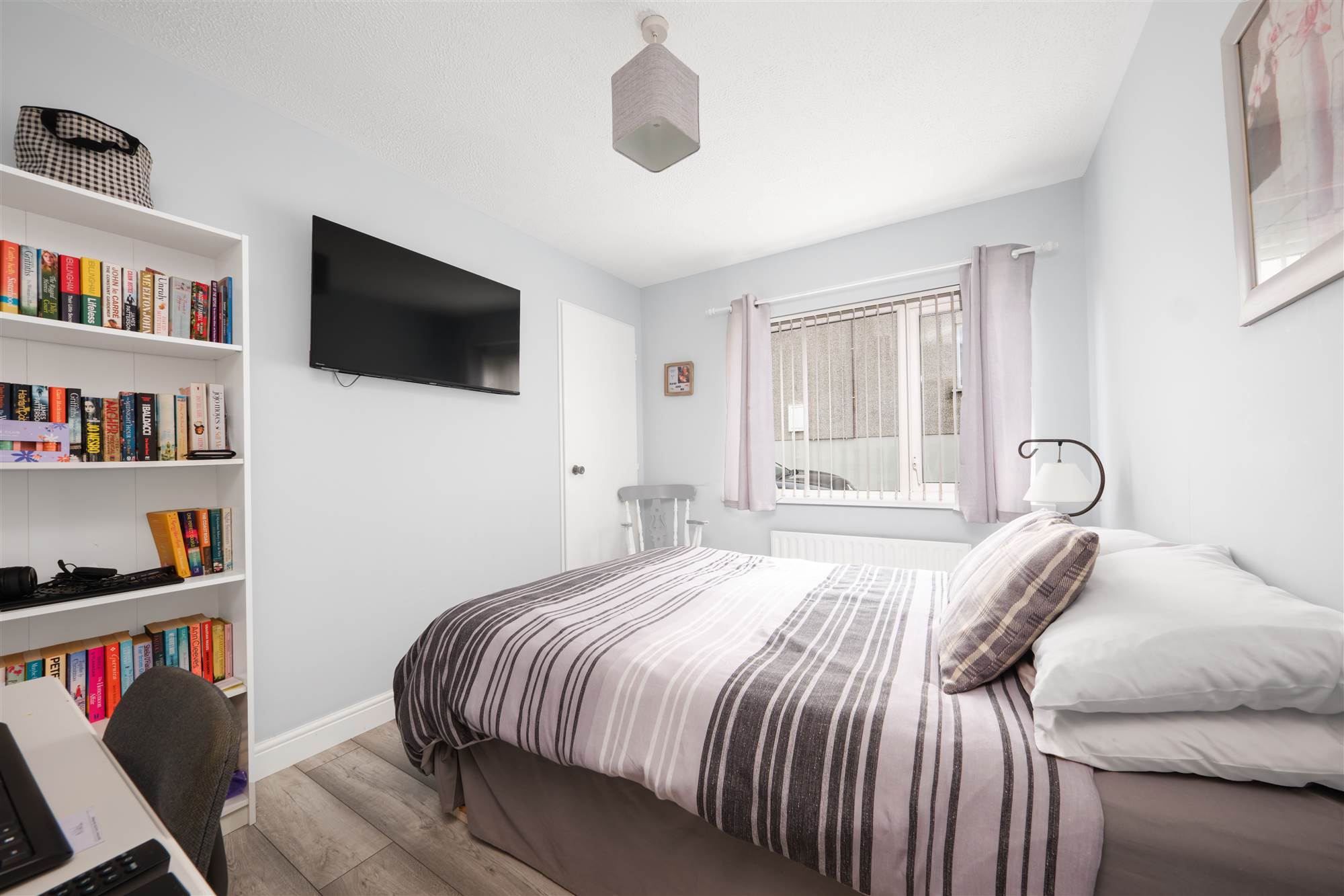 With built in mirrored slide robes, laminate wood floor and PVC sliding patio doors to rear garden.