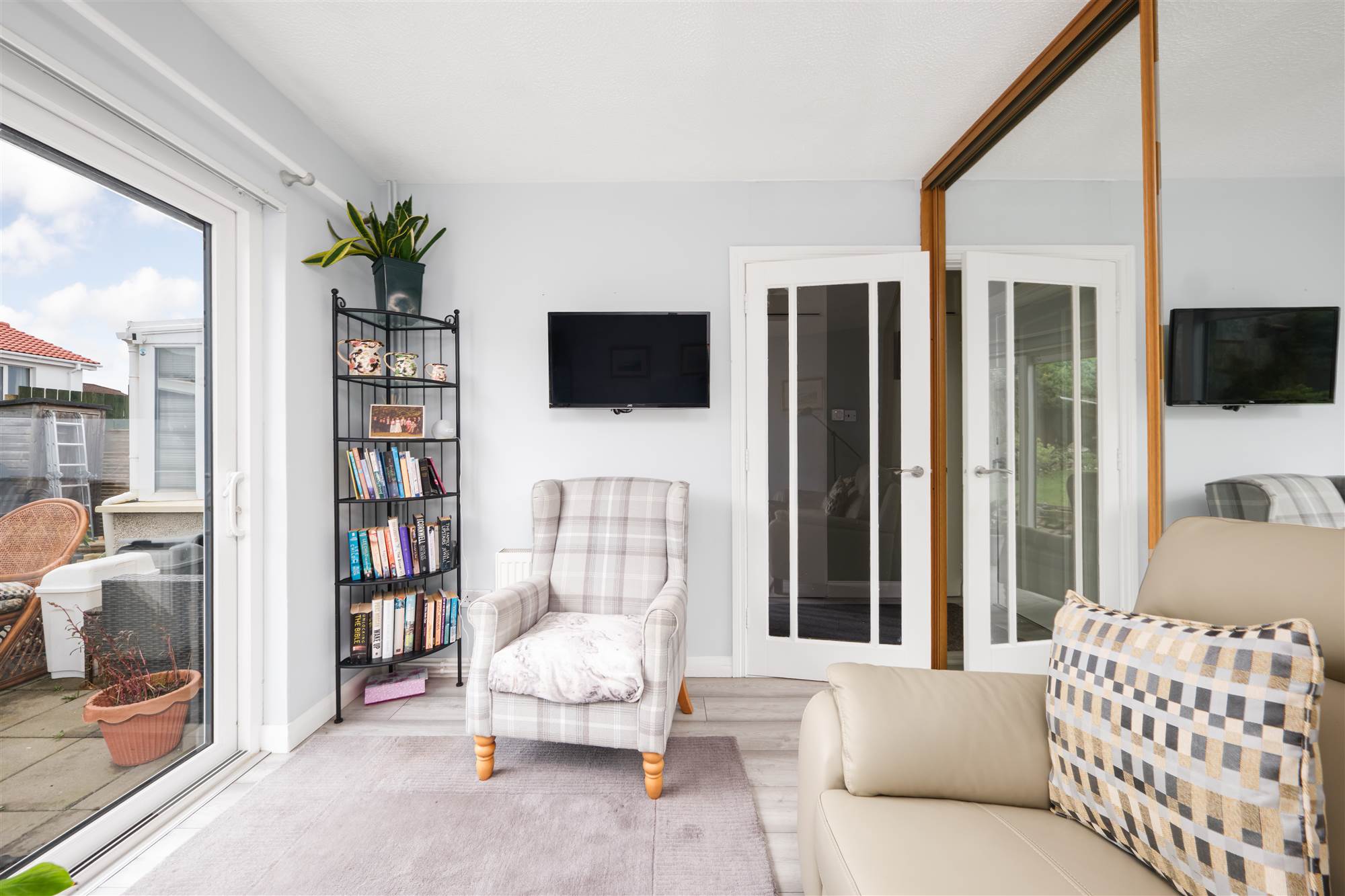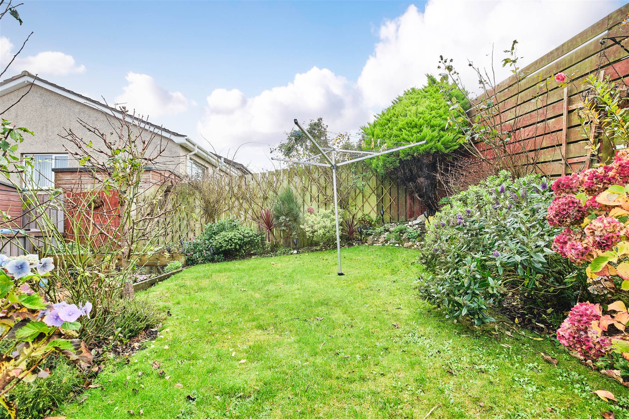 Garden to rear is fenced and laid in lawn with two paved patio areas and surrounded by established trees, shrubs, hedging and elevated flower beds. Light to front and rear. Tap and shed to rear. Tarmac driveway leading to side of property. Garden to front is laid in lawn with established shrubs. Large shed to side.