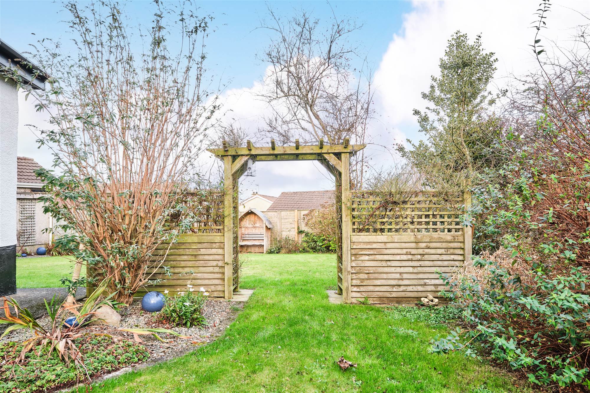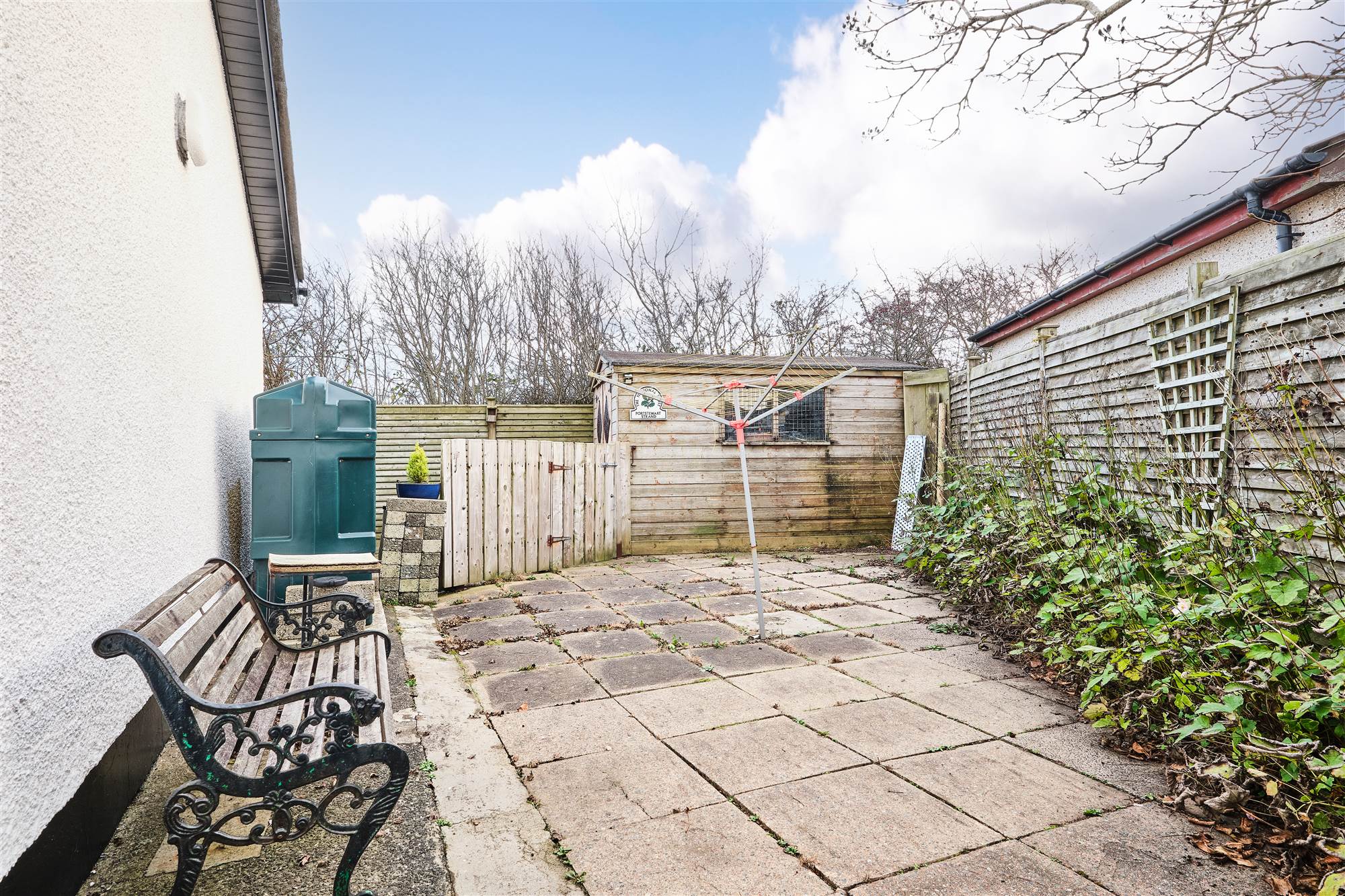 Extensive tarmac driveway leading to front of property with parking for multiple cars. Generous garden to rear, fenced, laid in lawn with paved patio area. Concrete path surrounding property. Selection of mature shrubs and Arbour overlooking countryside. Additional enclosed paved area with shrubbery. Light to front, rear and side. Shed and tap to rear.