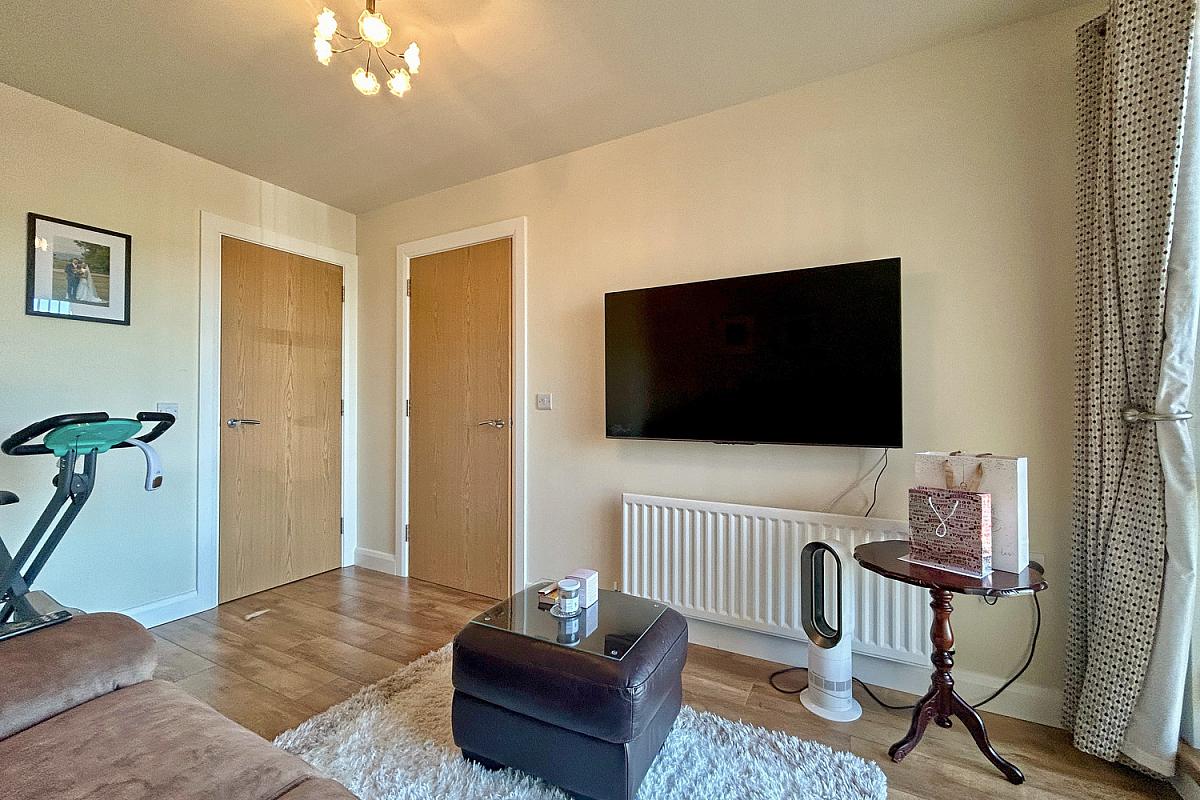 Box bay window to the front; wall mounted electric fire; engineered wood floor.