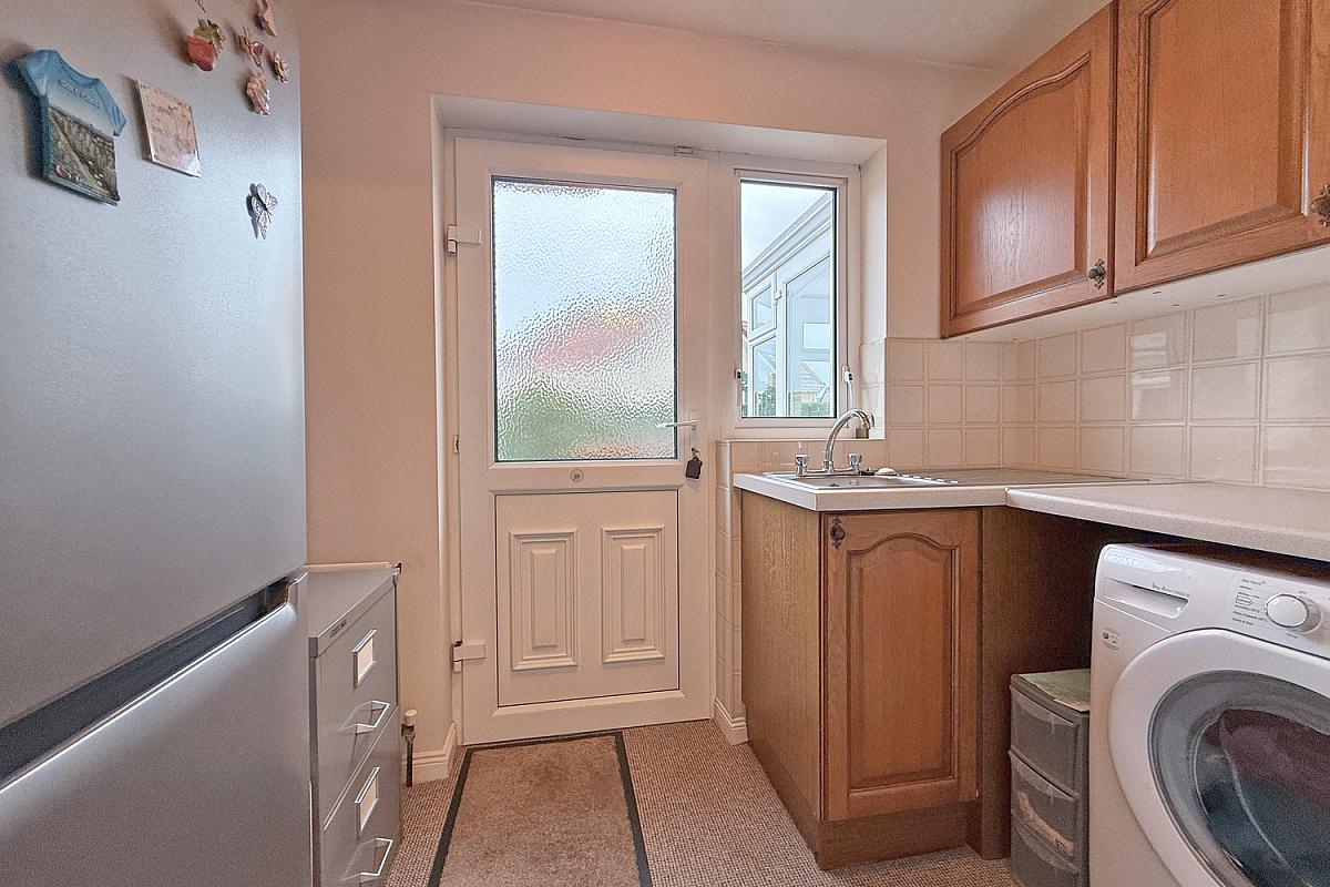 Range of fitted units; stainless steel sink & drainer; laminate work surfaces; space for fridge freezer; plumbed for washing machine; door to the rear.