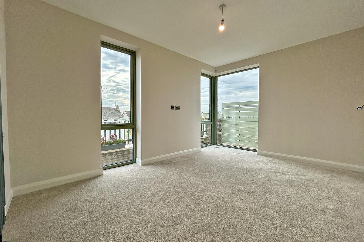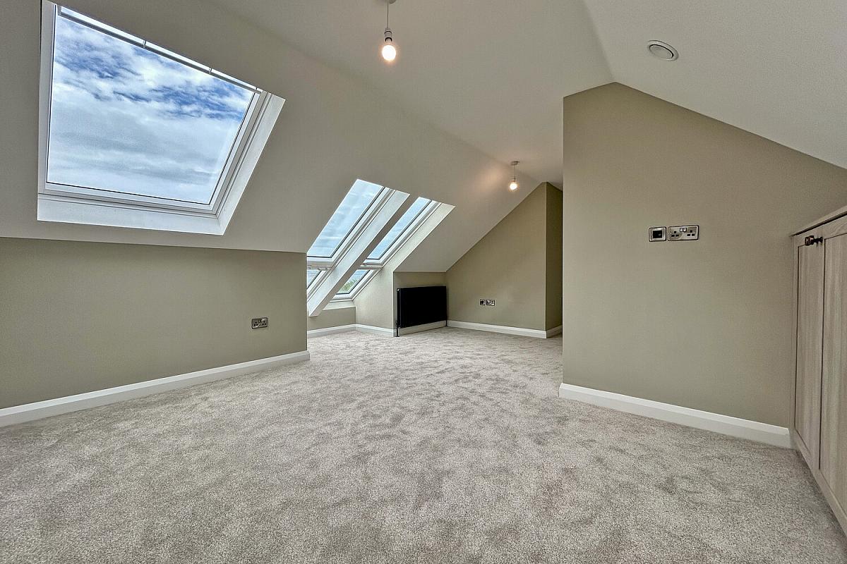 Double bedroom with range of fitted furniture; twin ceiling windows (one balcony style).