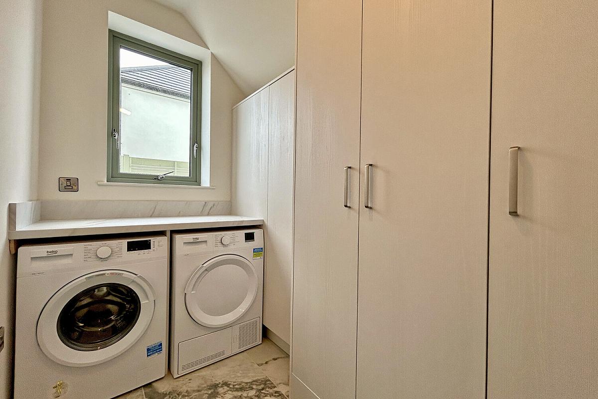 Range of fitted units; laminate work surfaces; washing machine & dryer; fitted cabinets with Beam vacuum system and gas boiler; tiled floor.