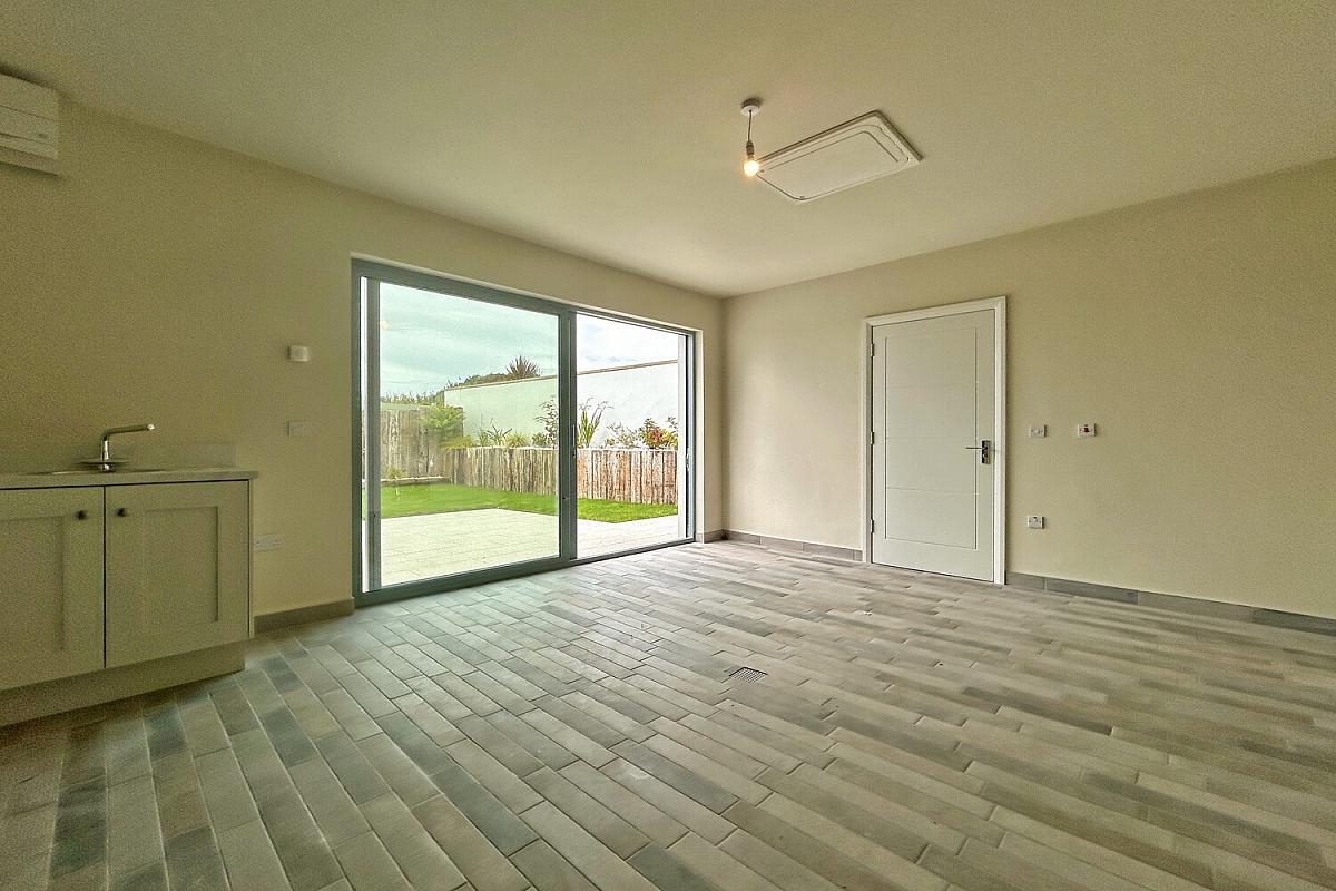 Wet bar with sink and fitted units; sliding patio door to the rear patio; tiled floor.