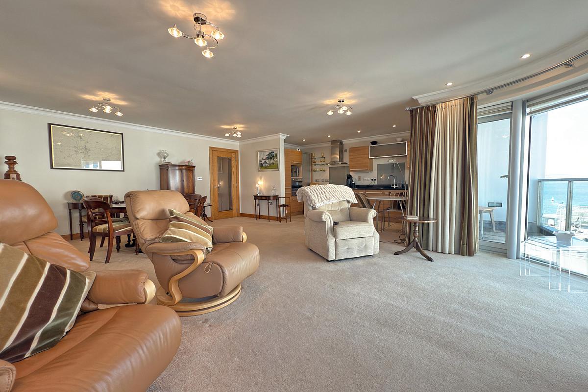A spacious second floor apartment with excellent views across Portstewart Harbour towards Mussenden Temple and the Donegal headlands. Extending to approximately 1,195 sq ft, the property features a generous open plan kitchen, living and dining area, two double bedrooms (one with ensuite), a family bathroom and a covered sit-out balcony. Residents also enjoy access to a shared rooftop terrace, secure basement car parking and dedicated storage facilities.