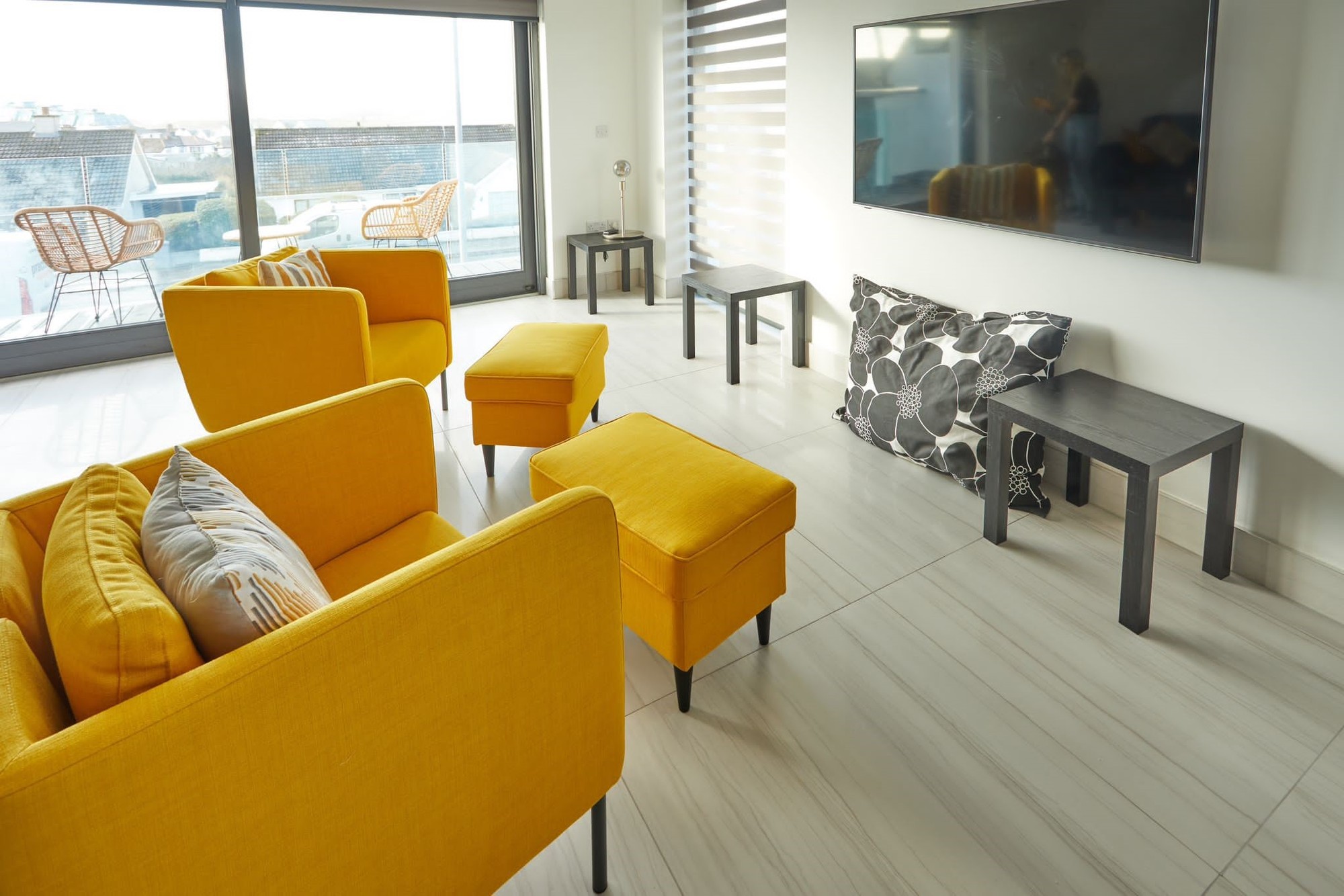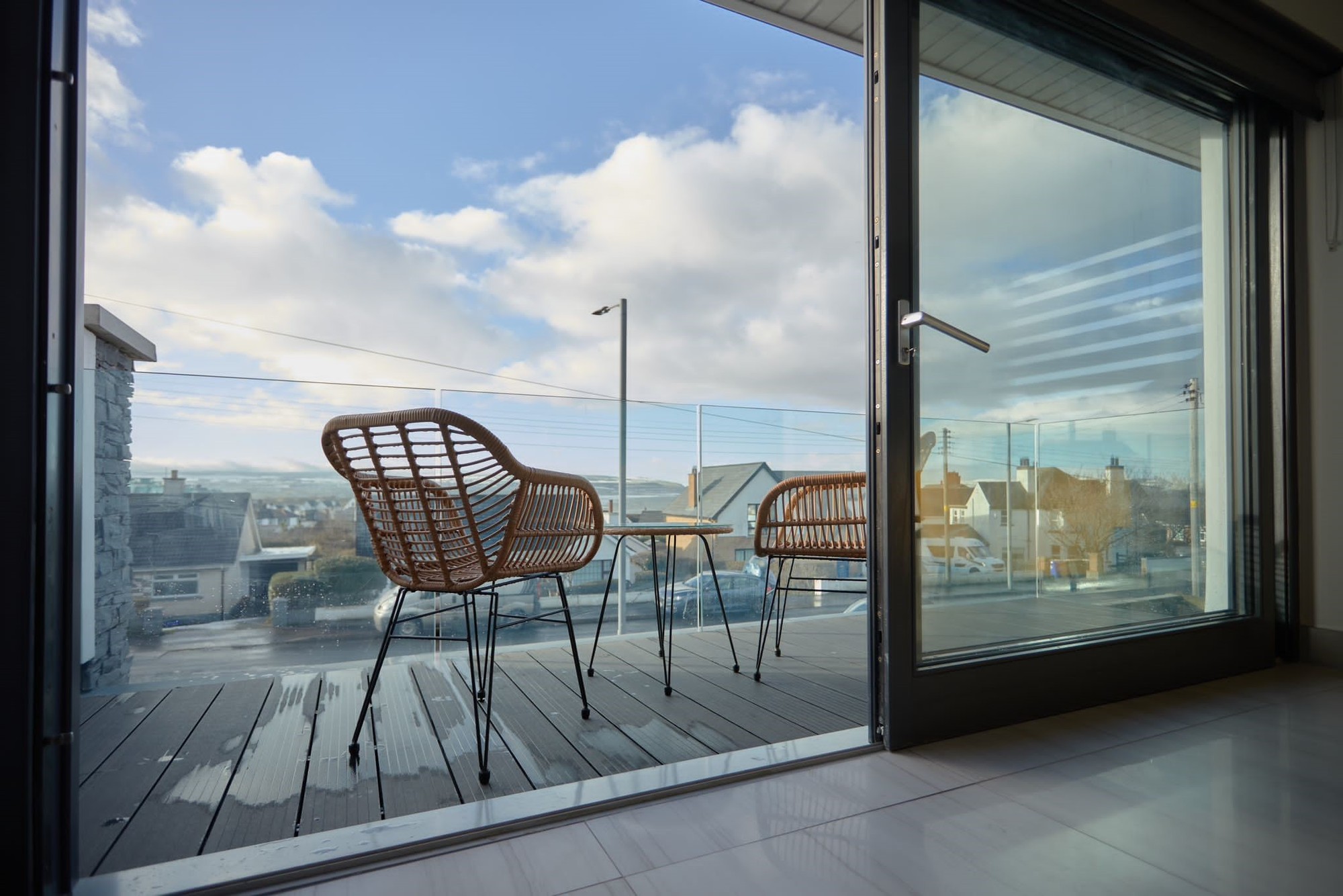 Includes; landing/ hallway leading to bedroom 4 (king bed), bathroom, and spacious sitting room with double doors opening on to a decked sun terrace offering lovely views, ideal for enjoying at the end of a hard day. Please note the sitting room includes one sofa bed.