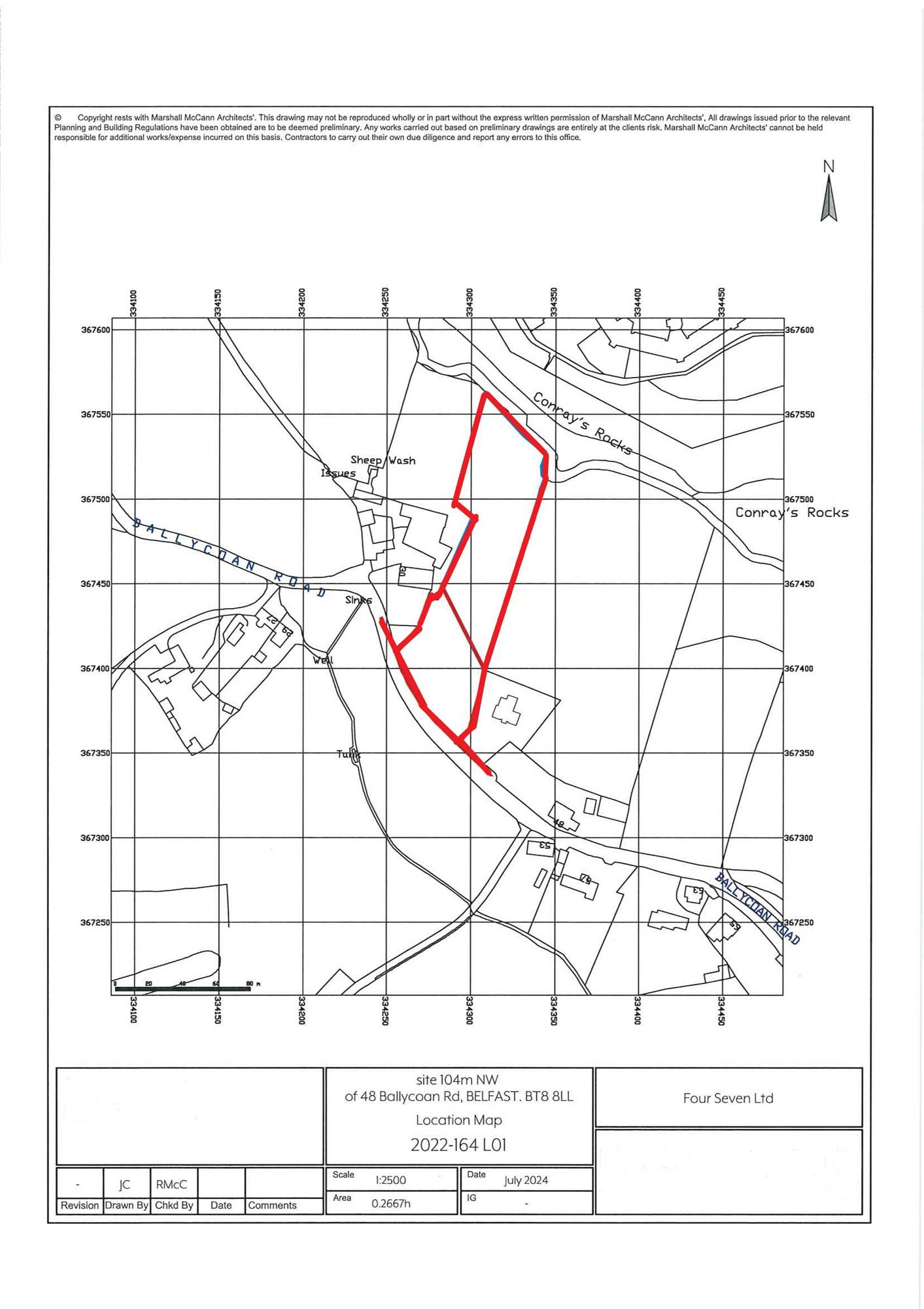 Travel along Shaws Bridge as far as you can go and at traffic lights turn right and go past the Belvoir Park development. Take the next left onto Ballycoan Road. The site is on the left hand side adjacent to 48 Ballycoan Road.