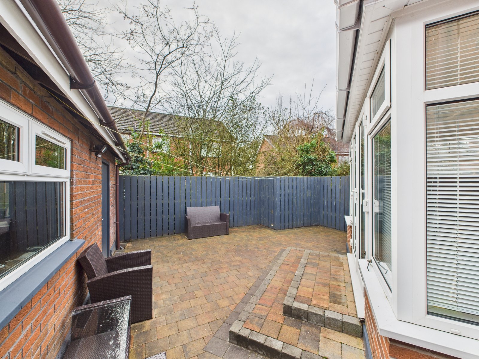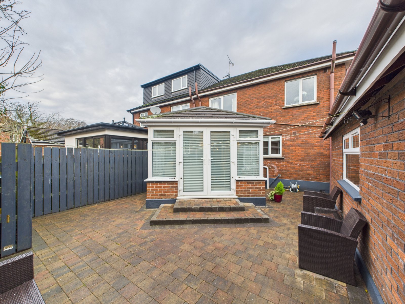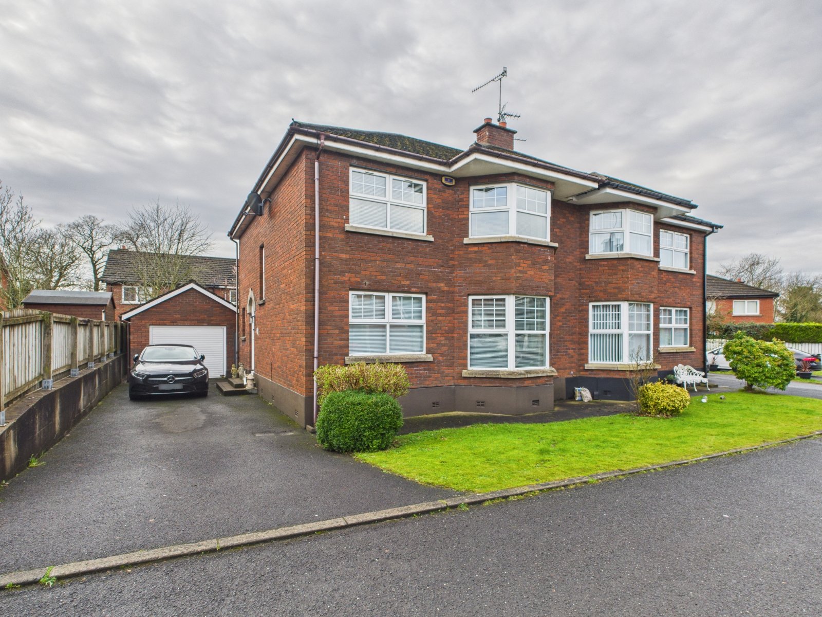 To the front is a garden with driveway and parking to the side with Tobermore paved patio garden to the rear.