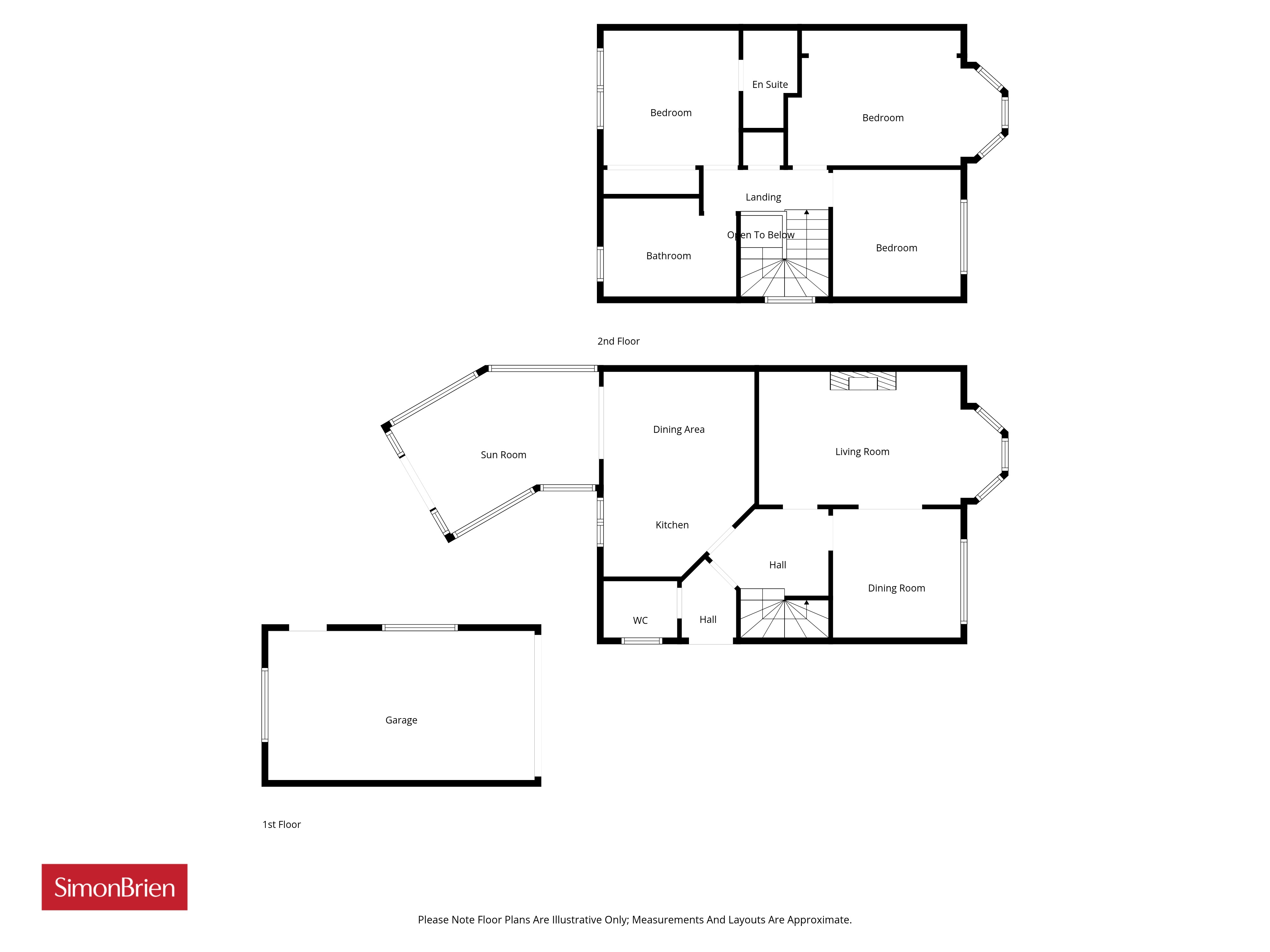 Downstairs comprises of a spacious entrance hall, a spacious lounge with a feature fireplace and a bay window, a sitting or dining room with French doors to the lounge, a white gloss kitchen with integrated appliances and dining space, a spacious sun room with access to the kitchen and to the garden, and a downstairs wc. Upstairs comprises of three double bedrooms - two with fitted wardrobes, an en-suite shower room with a three piece suite off the main bedroom, and a large family bathroom with a white four piece suite.
