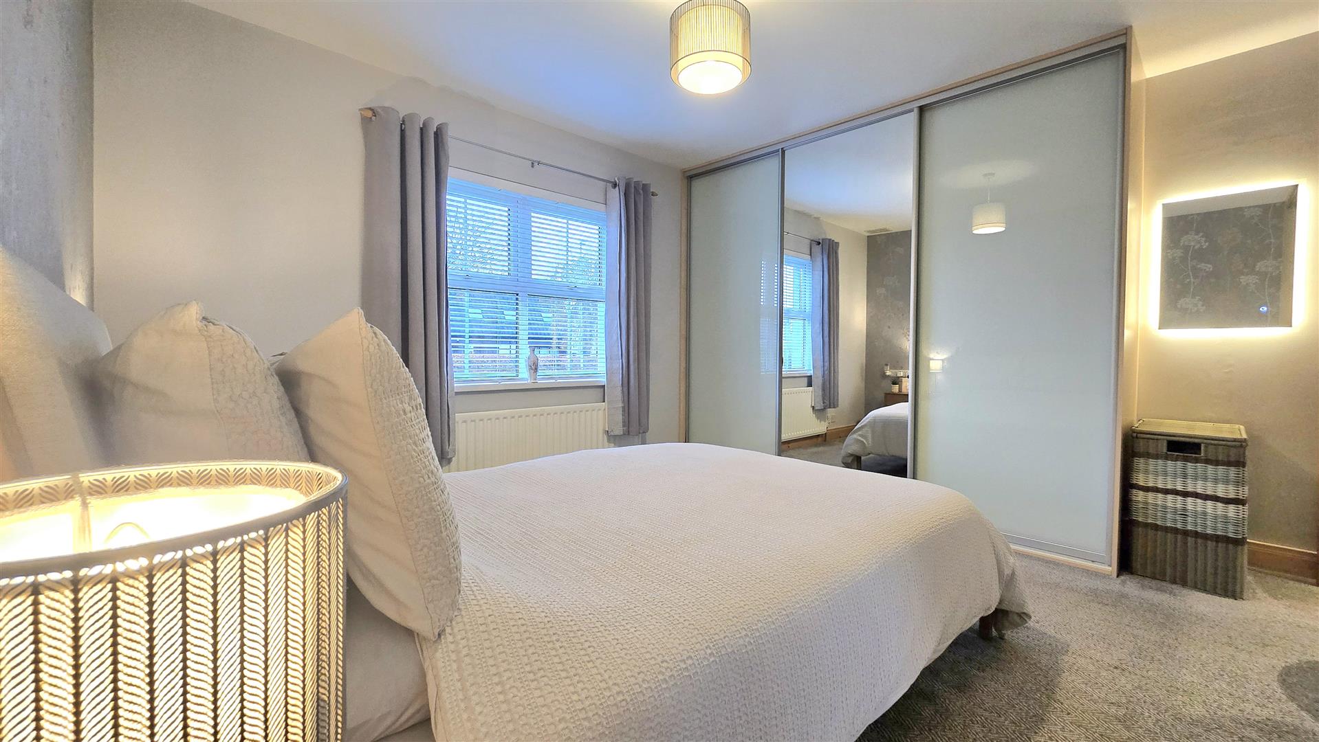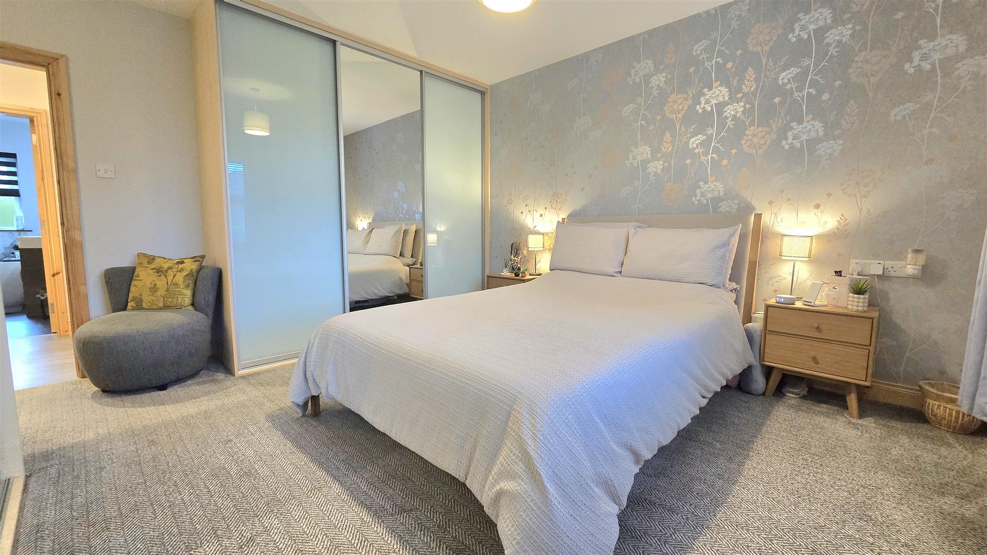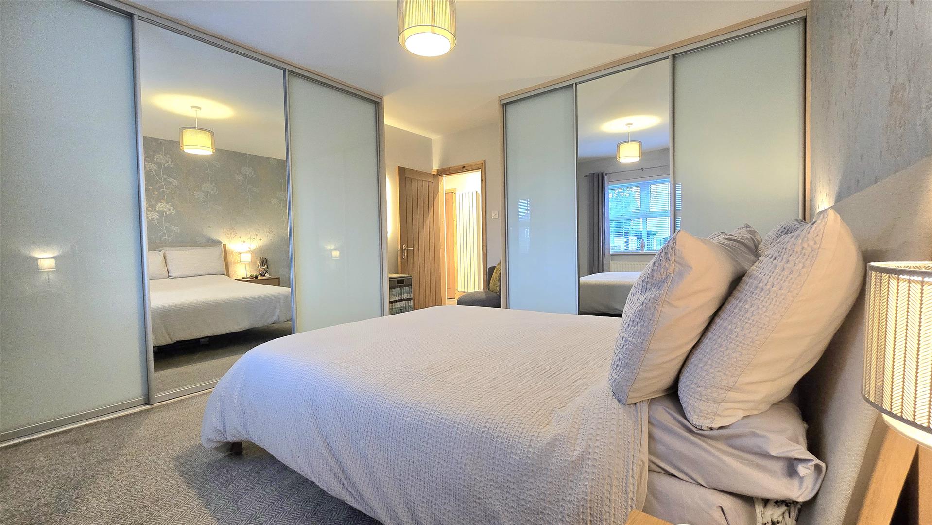 Fitted with mirrored sliding wardrobes.