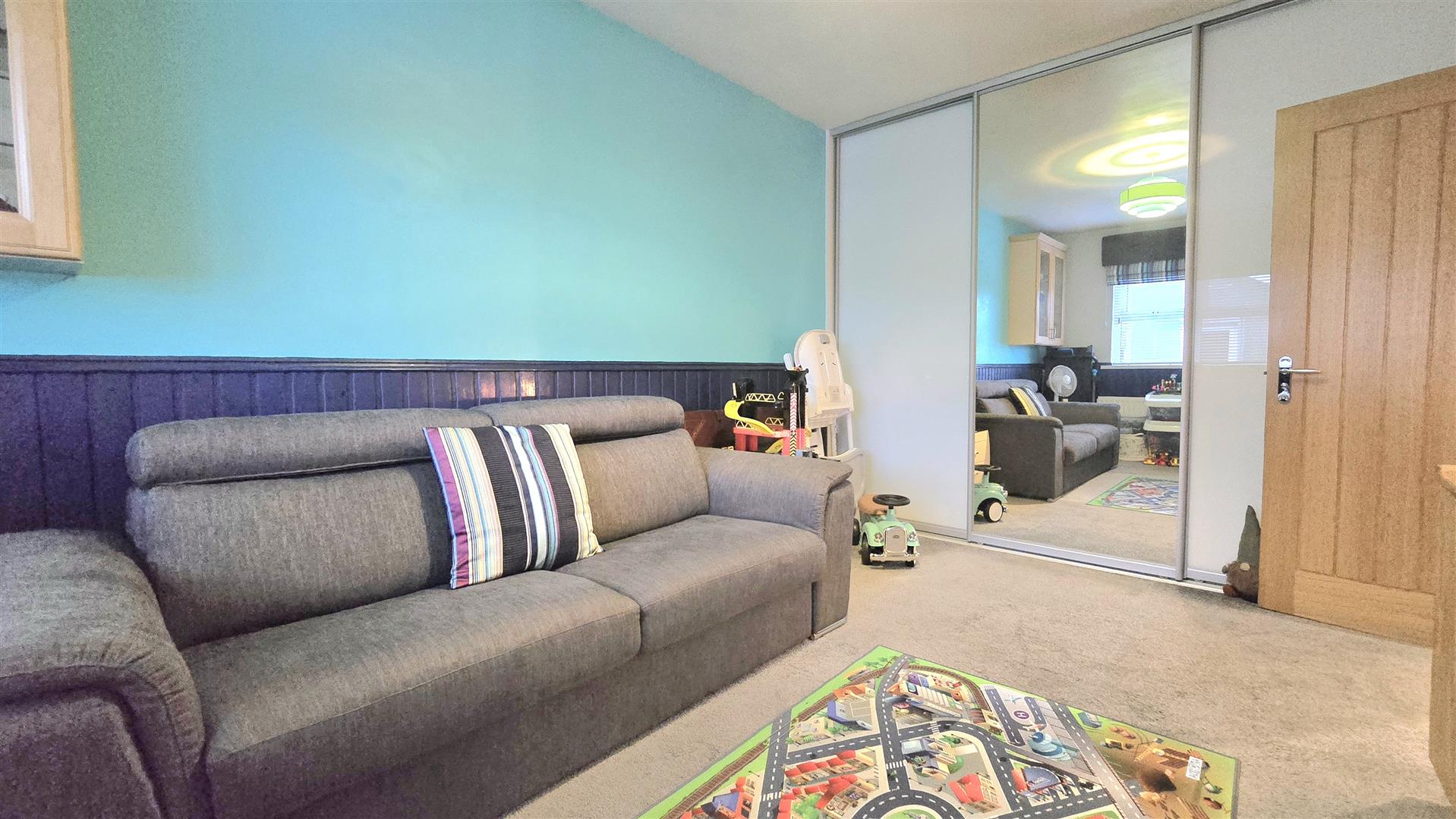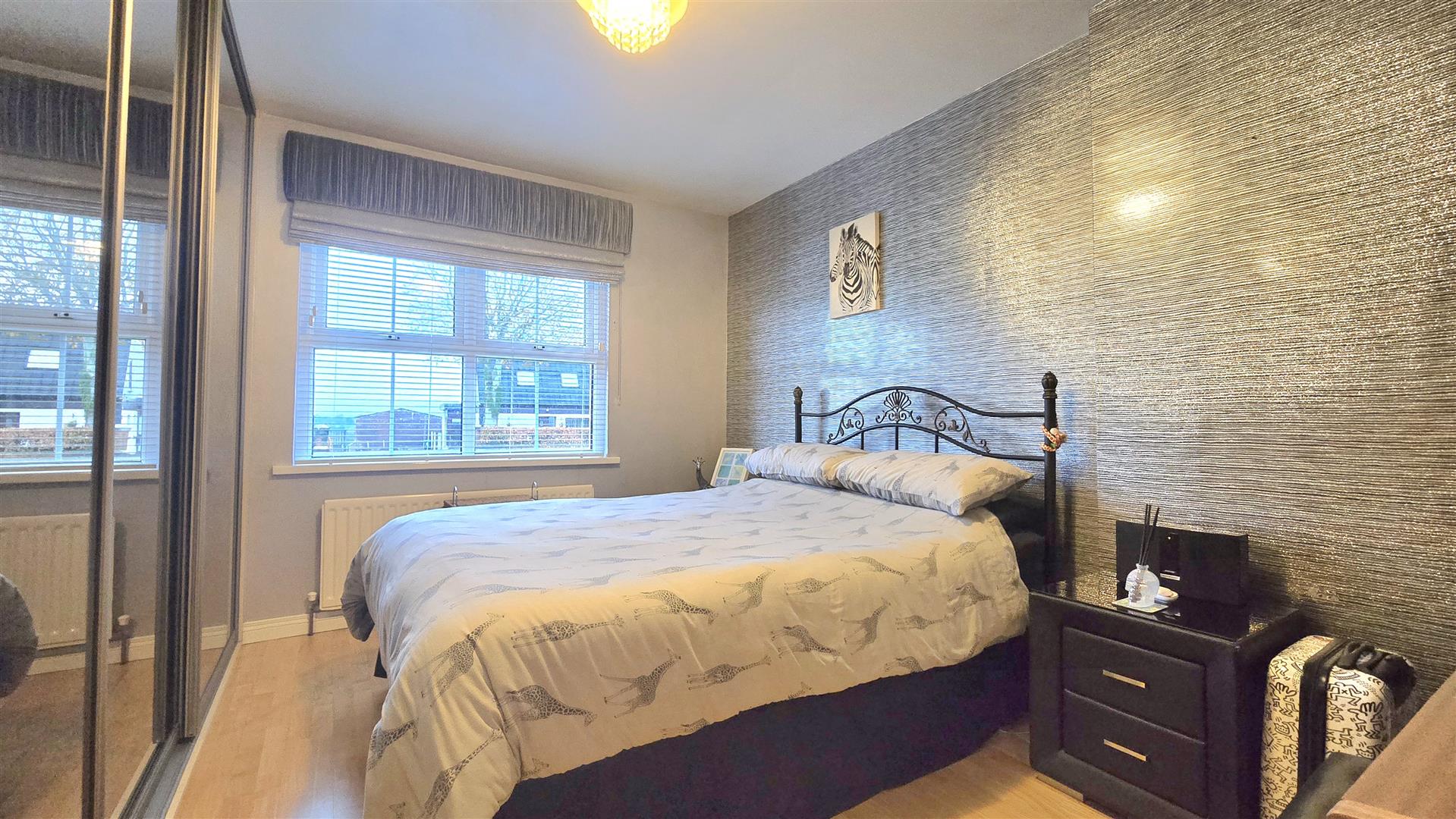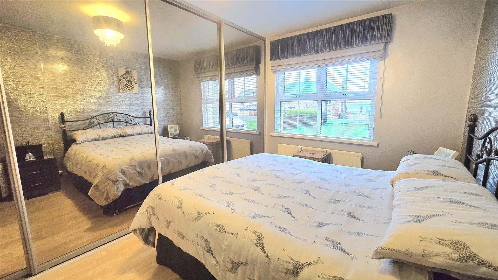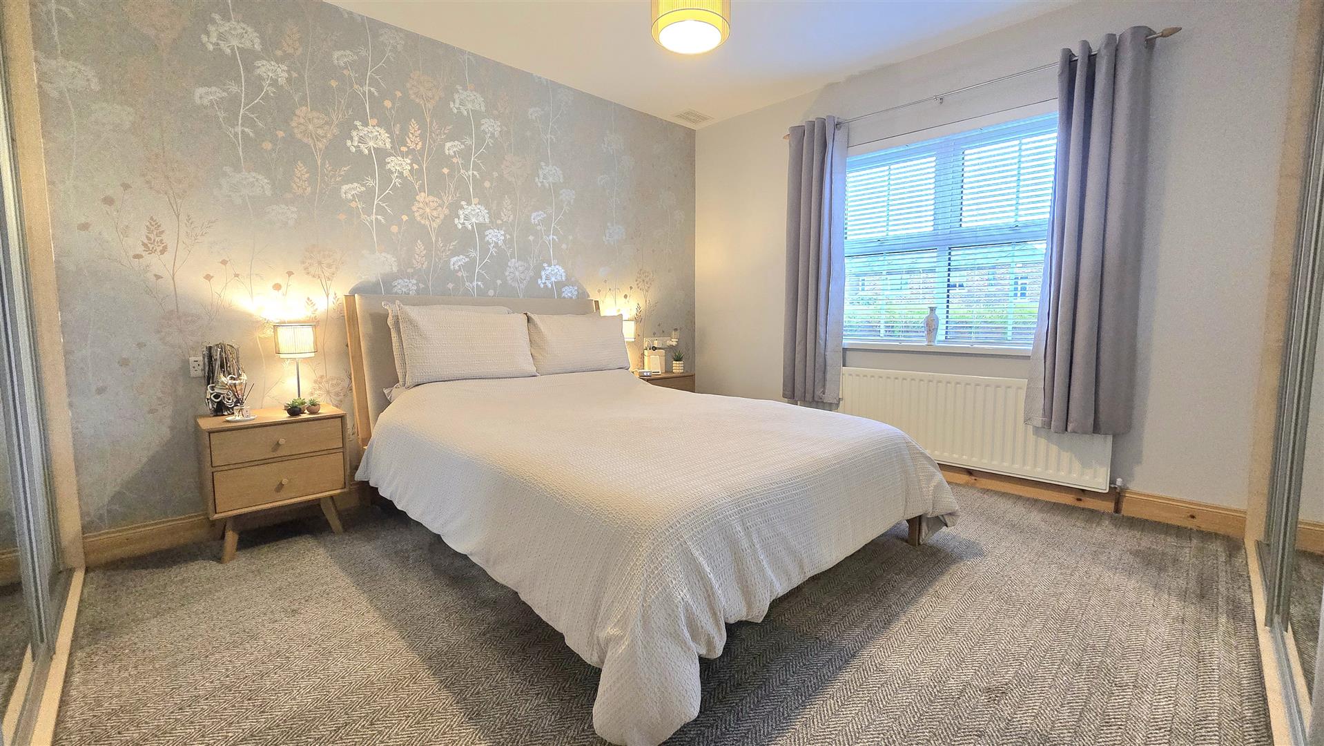 Fitted with mirrored sliding wardrobes.