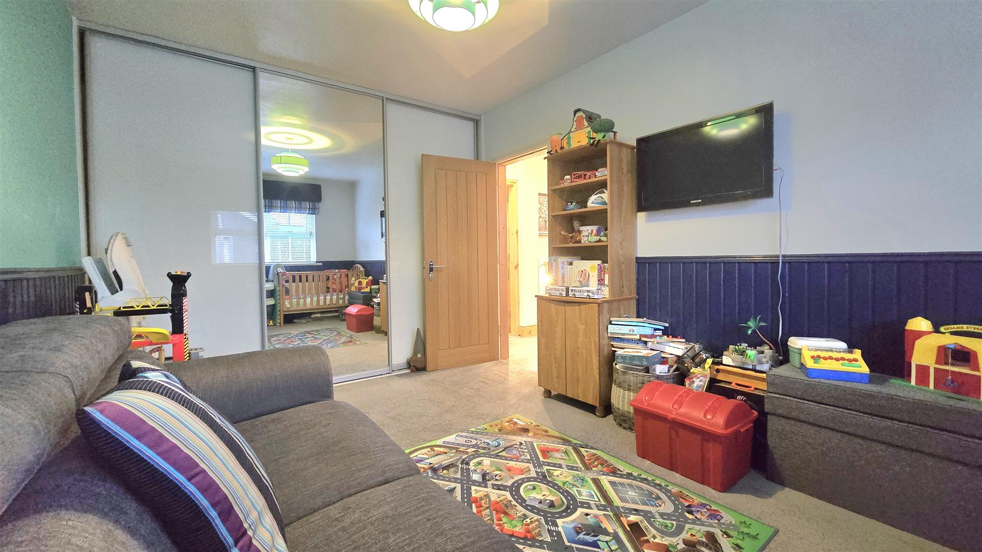 Fitted mirrored sliding wardrobes.