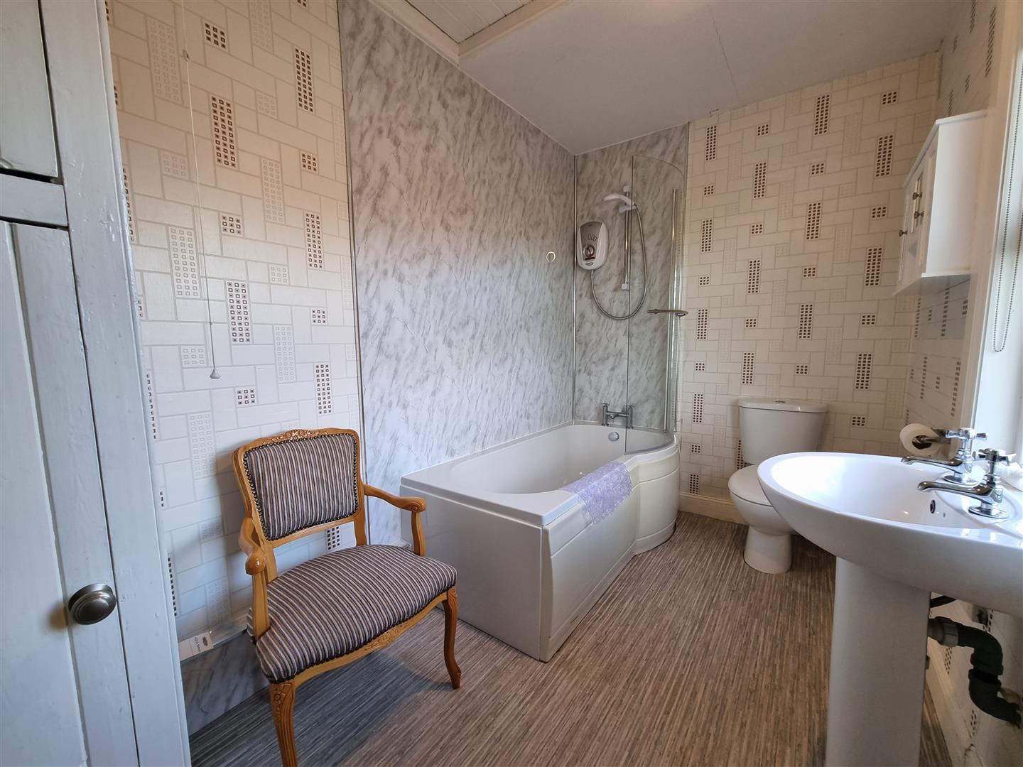 Fitted with a bath (shower over), wash hand basin and w/c