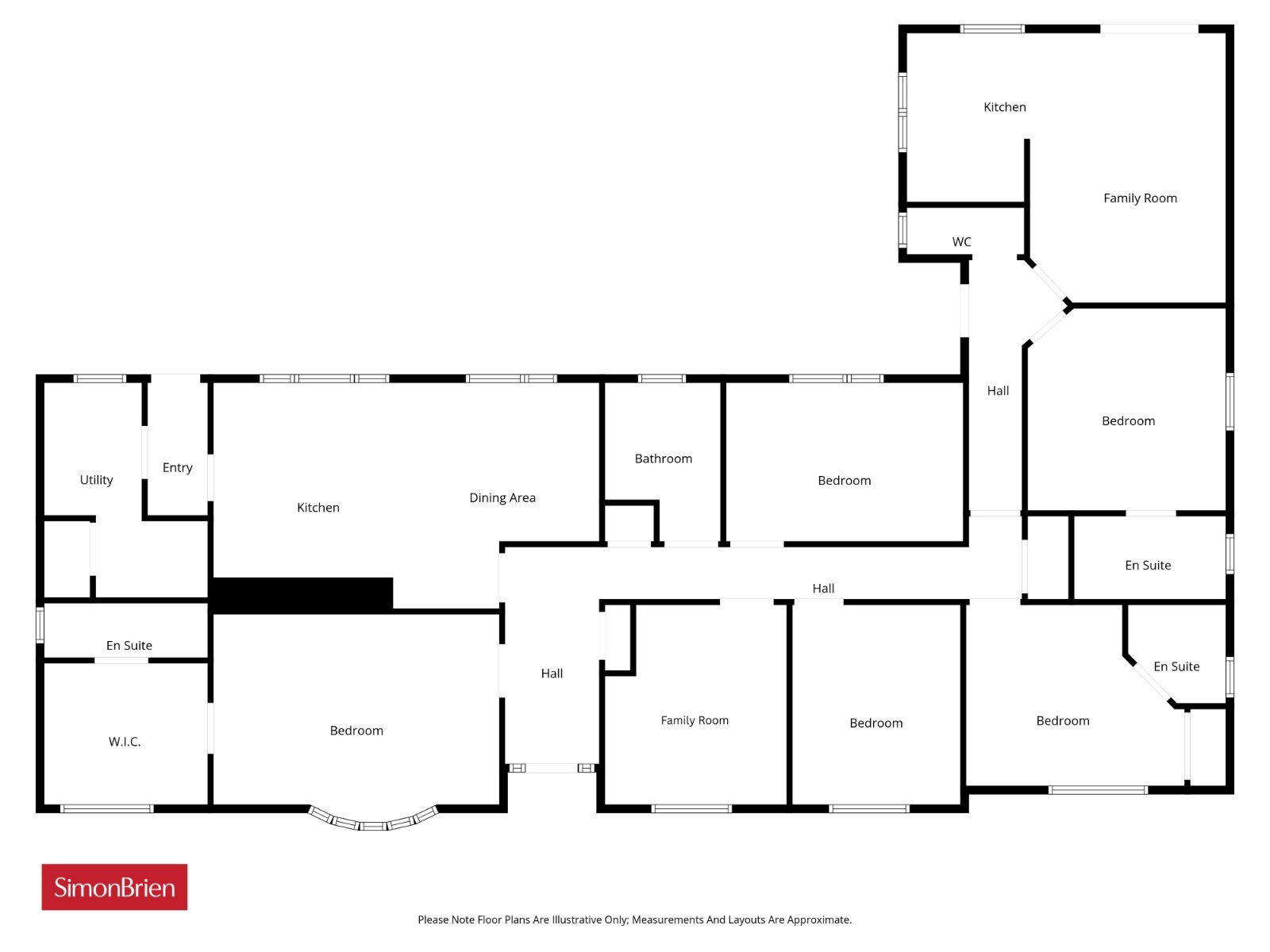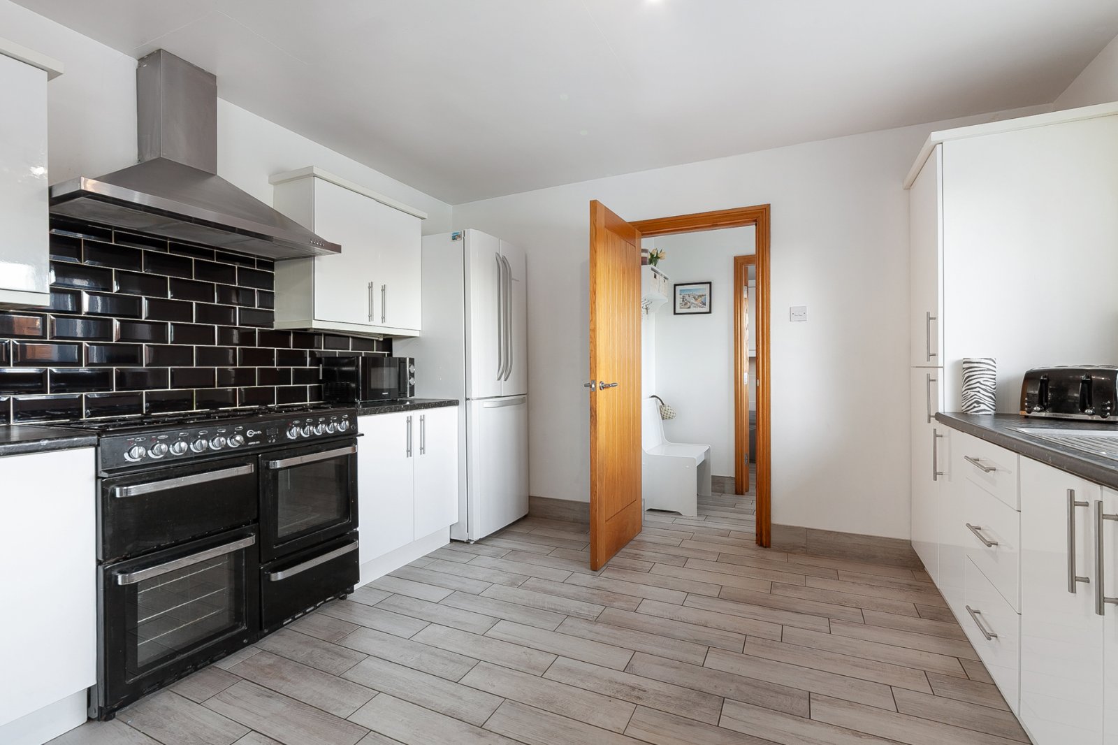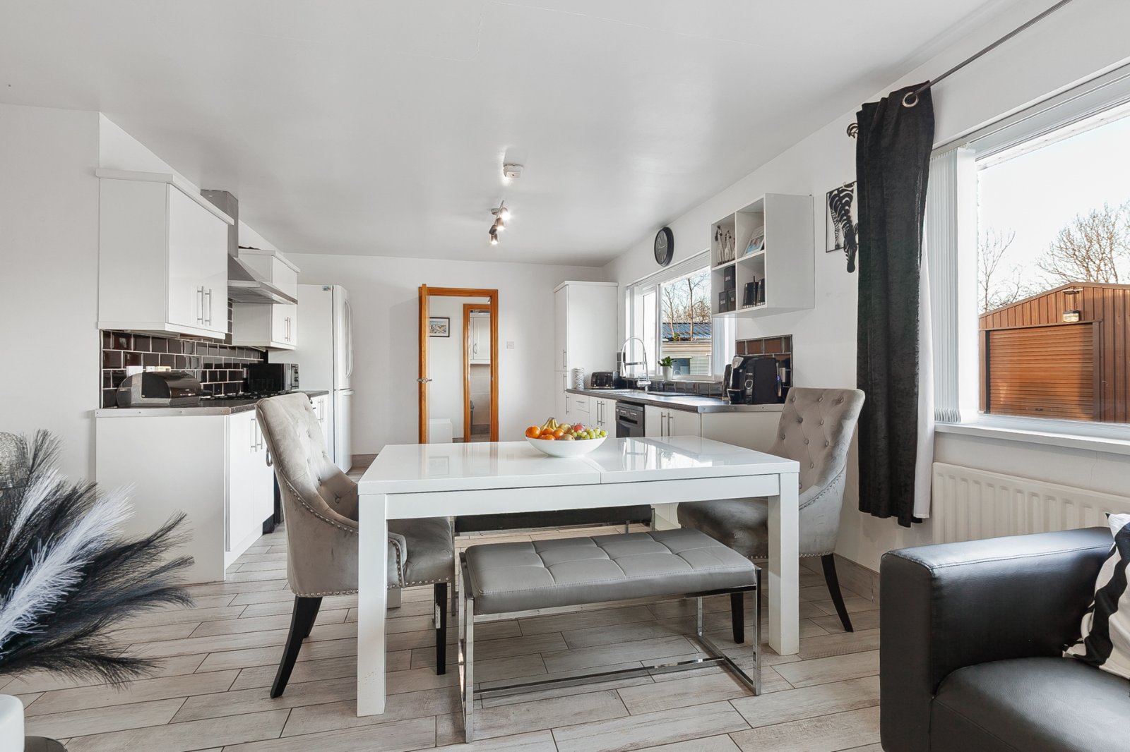 Modern kitchen with excellent range of units and built-in appliances. Open plan dining and family room.