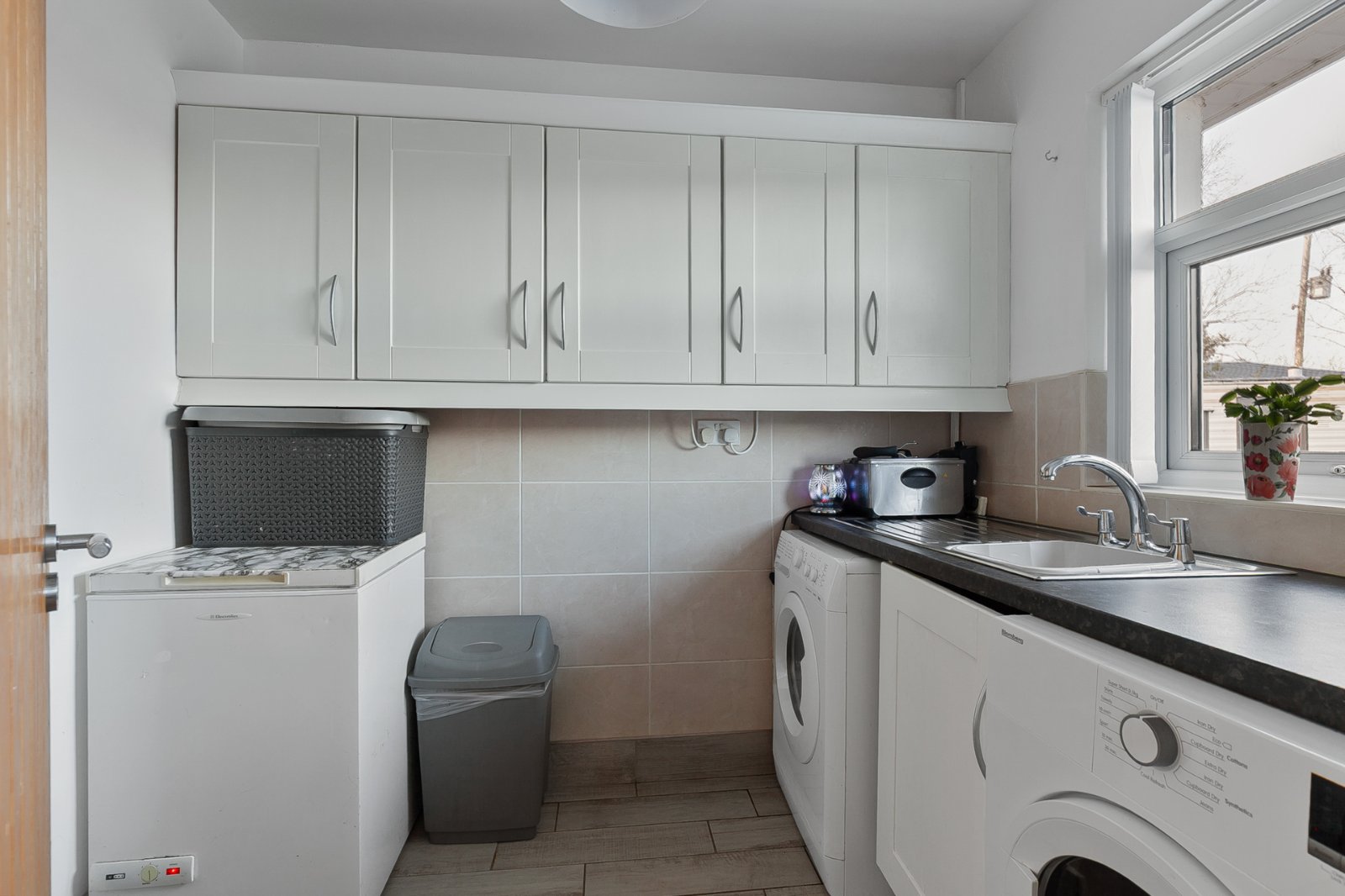 uPVC door to rear, plumbed for washing machine, oil fired boiler