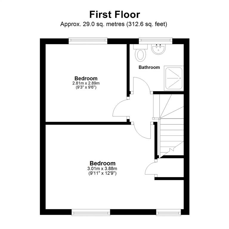 BEDROOM (2): 9' 6" X 9' 3" (2.89m X 2.81m)