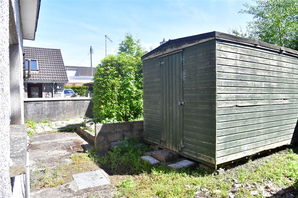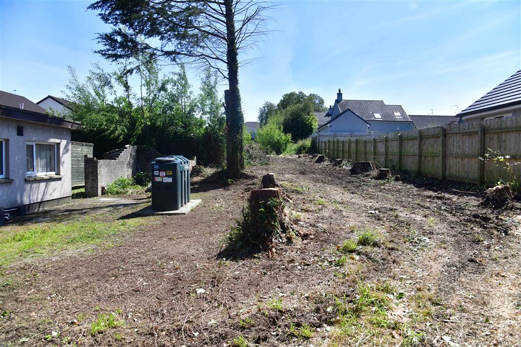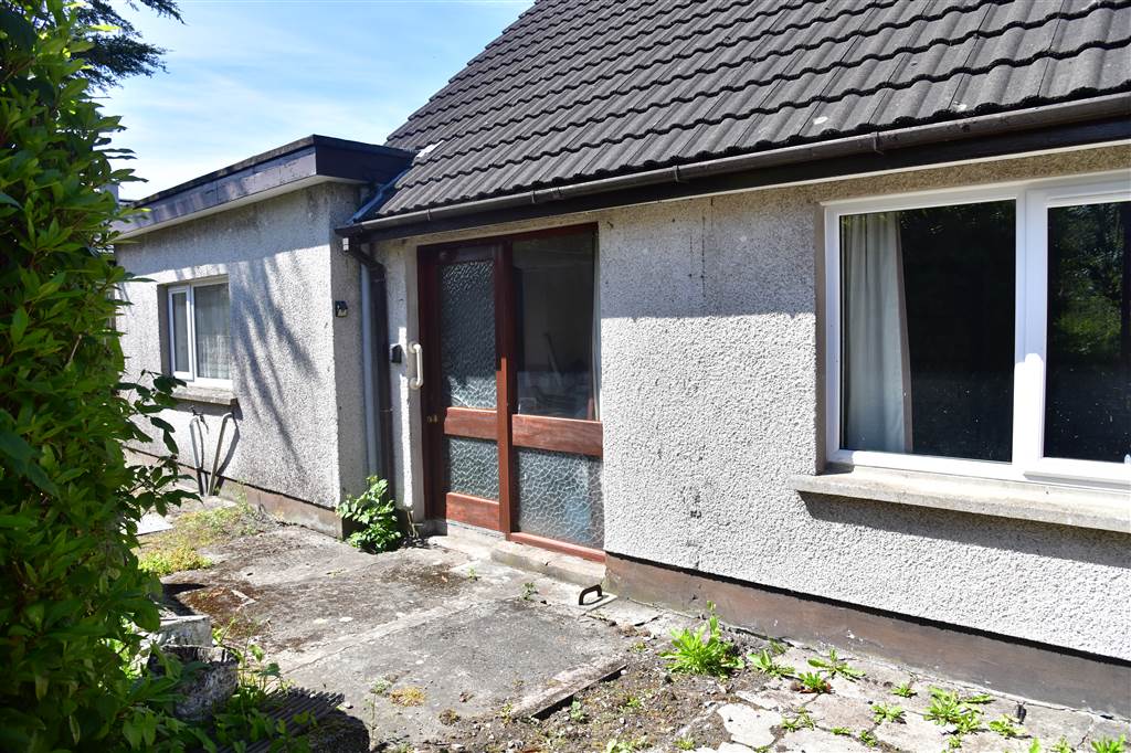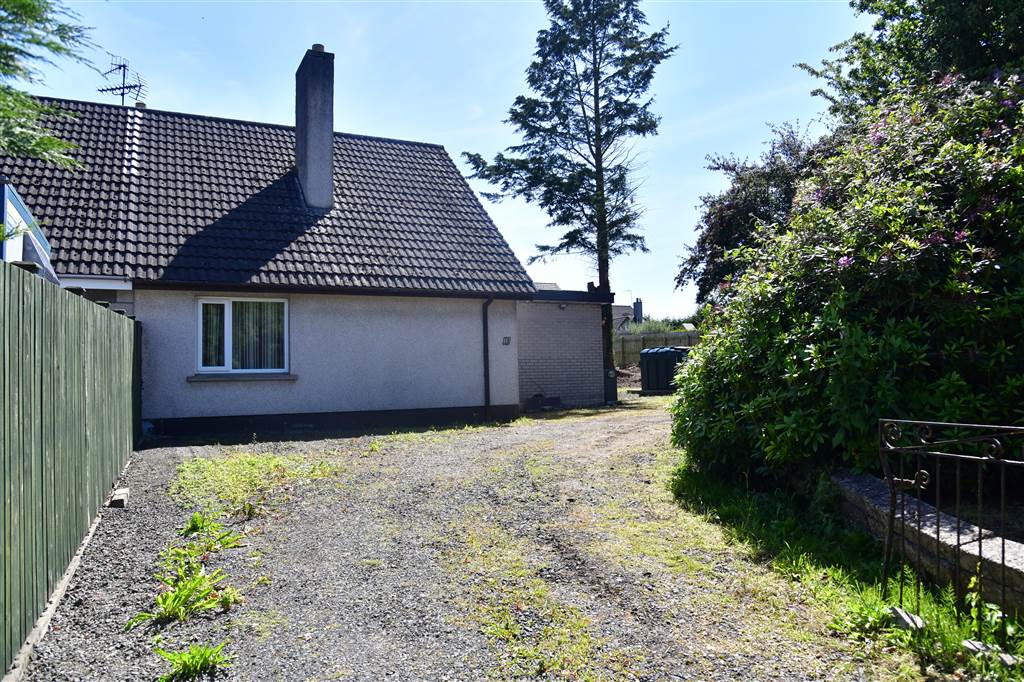 With stoned driveway leading to spacious stoned yard for parking. Spacious gardens to front, side and rear of property. Paved area at rear. Outside tap. Outside light.