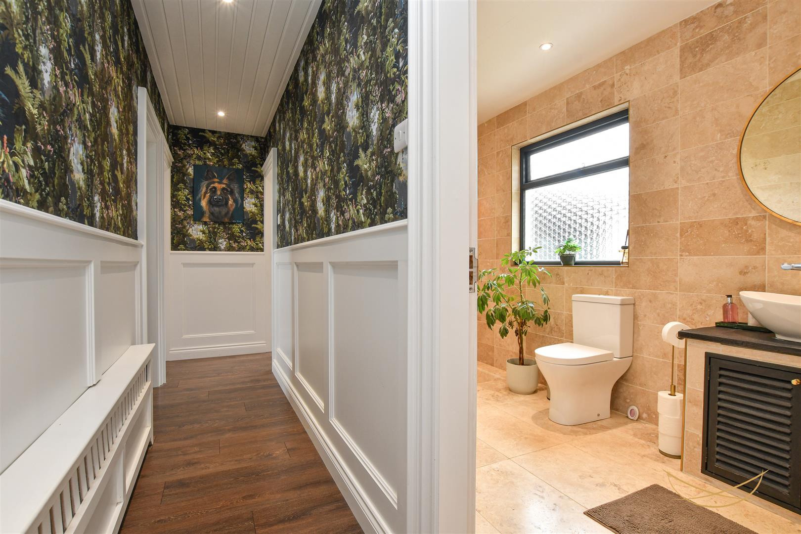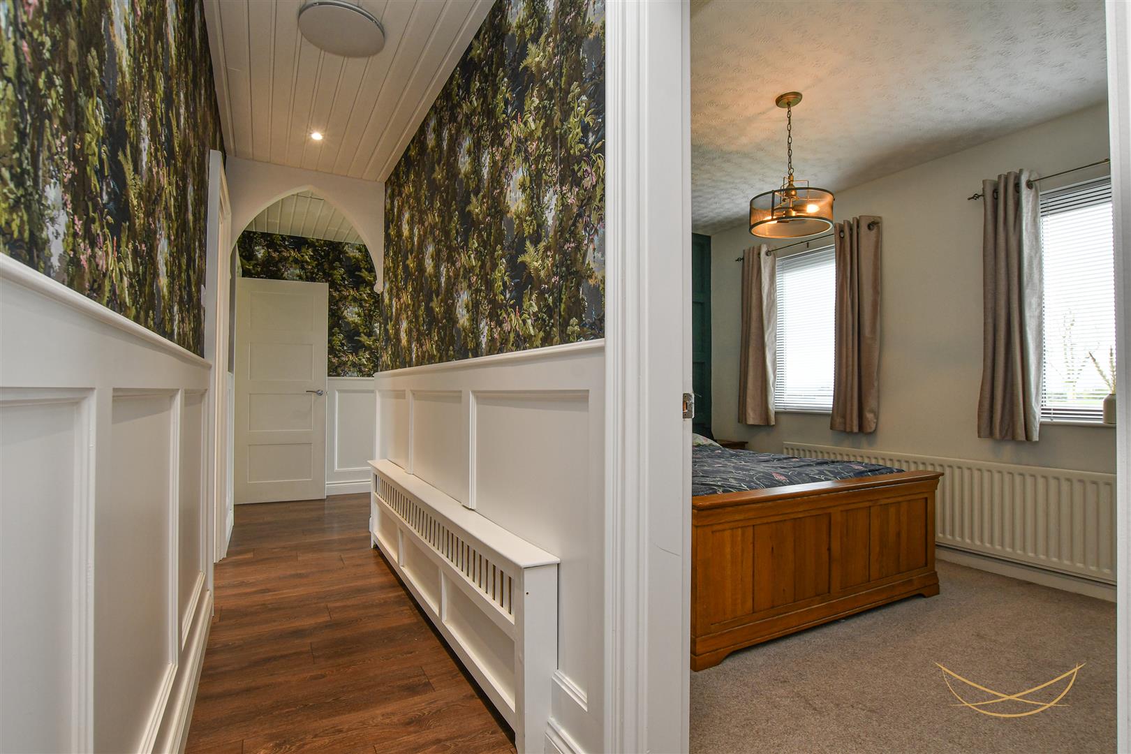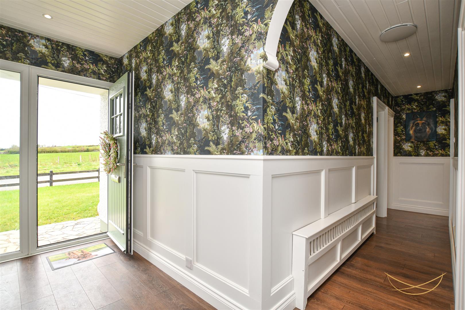 Composite front door with feature glazed inset and side panel. Feature wood paneling. Laminate wood effect flooring. Recessed spotlights. Access to roofspace - which could be converted due to ceiling height.