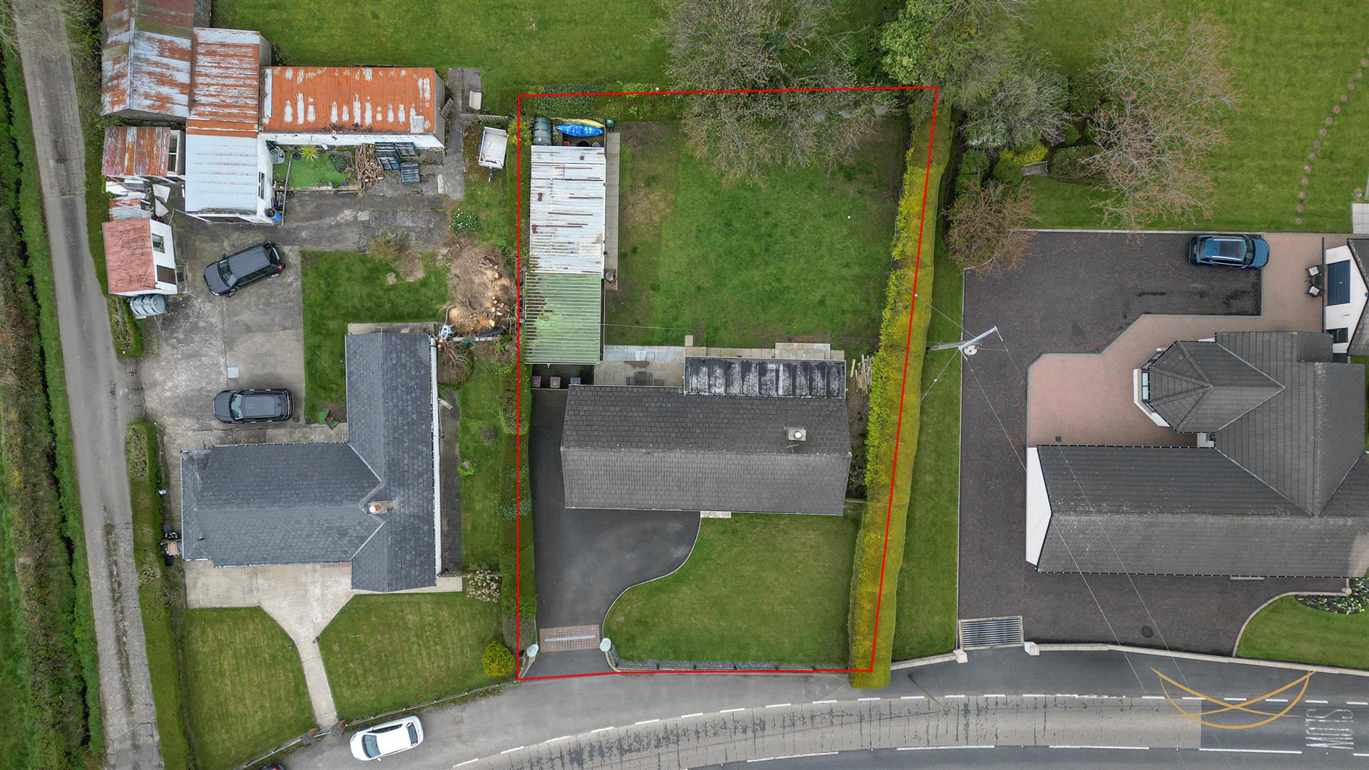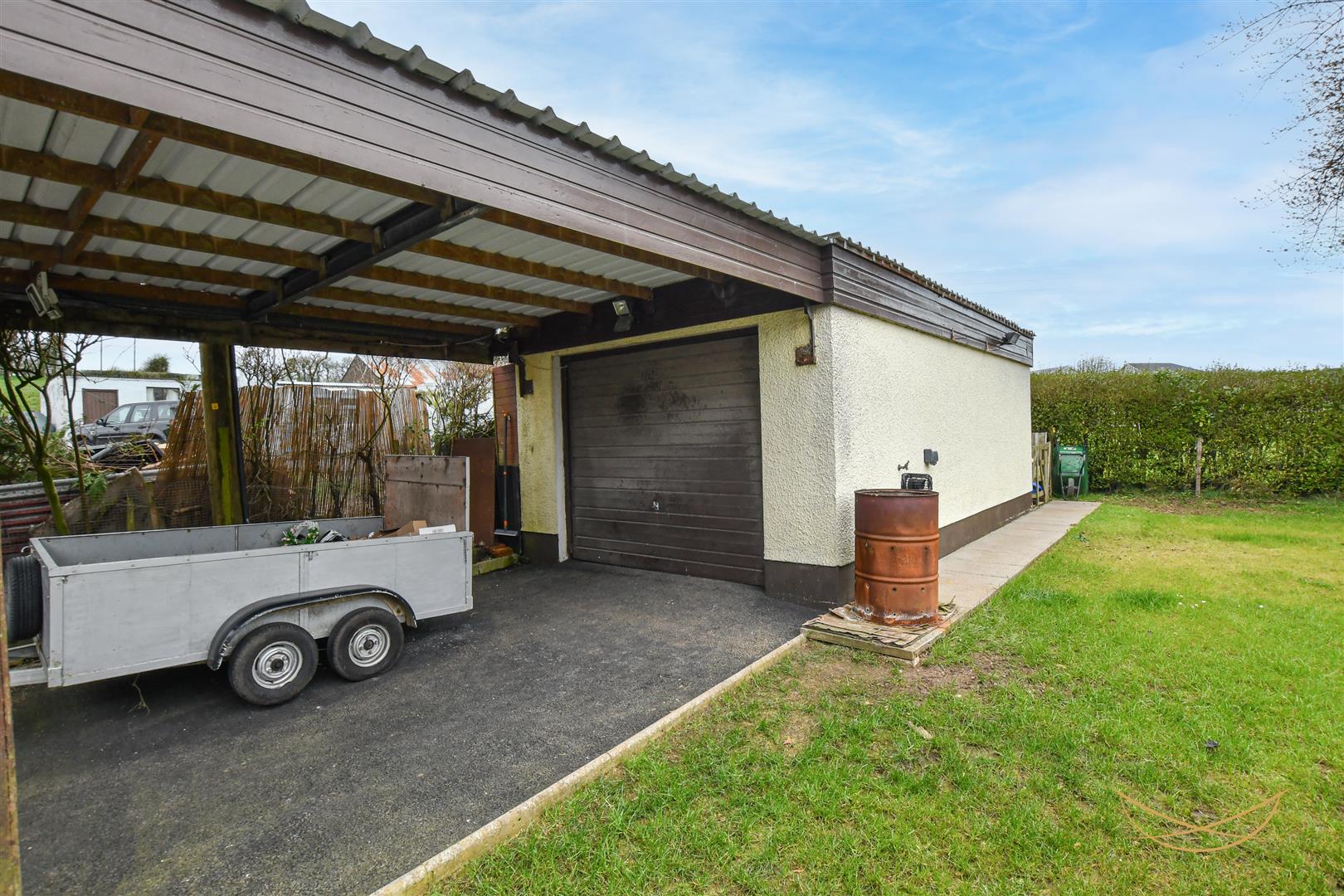 Front and rear laid in lawn bordered by mature shrubbery. Paved seating area. Outdoor tap. Outdoor light. Tarmac finished private driveway for multiple vehicles. Car port.
