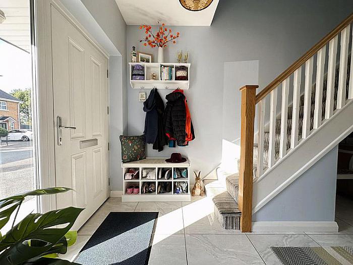 Composite front door with double glazed panel, fully tiled floor, 1 radiator.