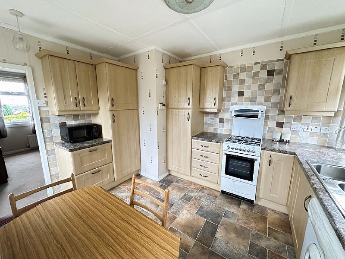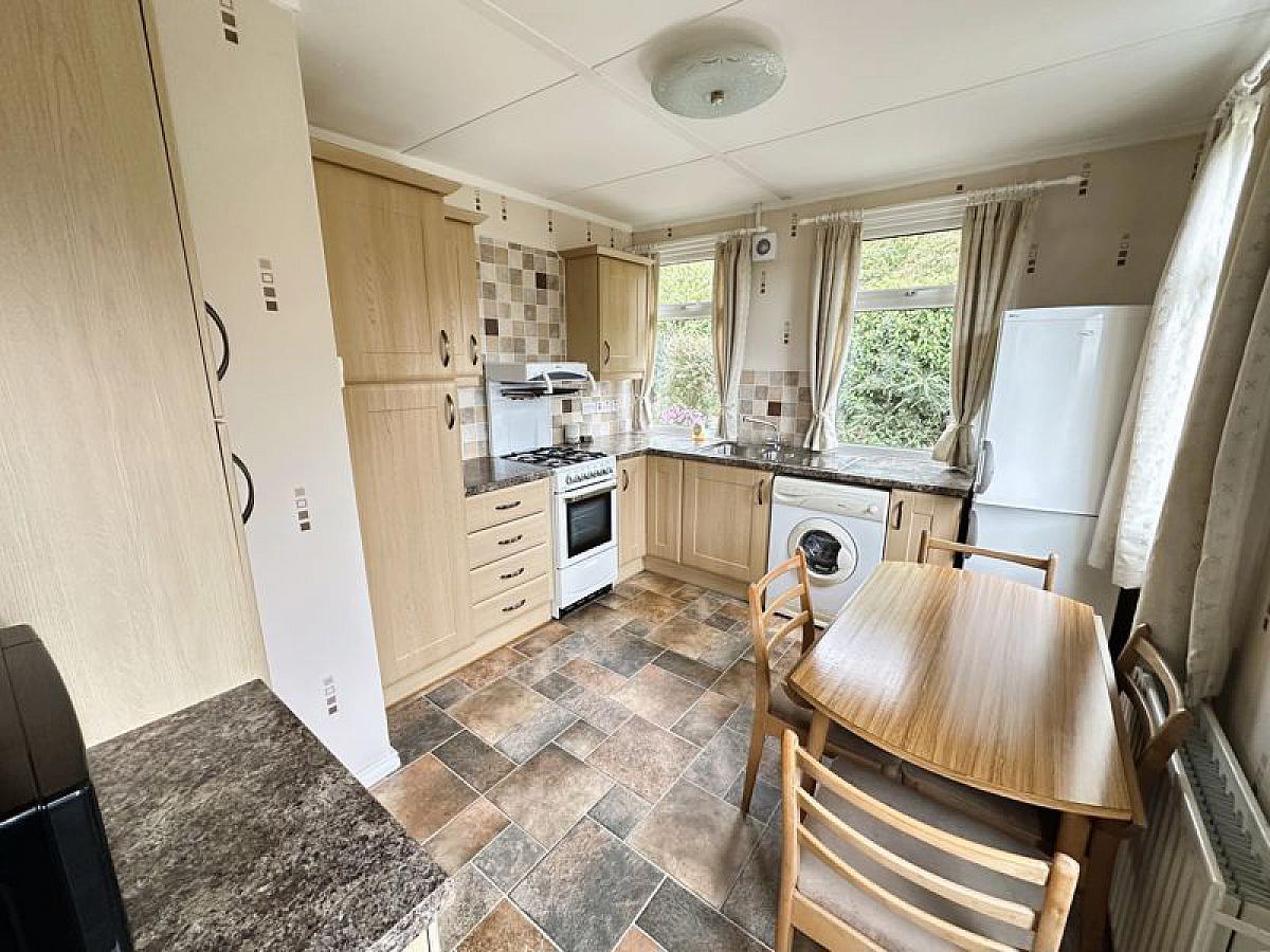 Full range of high and low level fitted modern units with 1 1/2 bowl stainless steel sink unit and mixer tap, cooker space, fridge/freezer space and plumbed for automatic washing machine. Part tiled walls, vinyl floor covering, PVC double glazed door to side, double radiator.