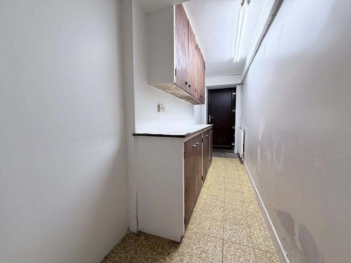 PVC door to side, range of fitted cupboards, understairs storage space, 1 radiator.