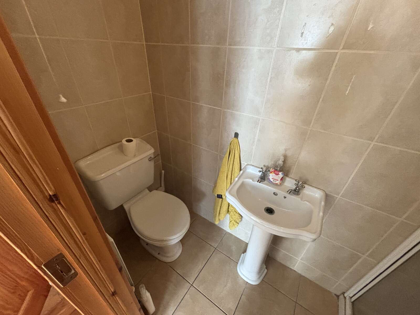 Bedroom 1: 12’7 x 11’8 (3.9m x 3.6m) Built in single door wardrobe. Semi solid wooden floor En-suite: White WC and wash hand basin. Tiled shower cubical electric shower.