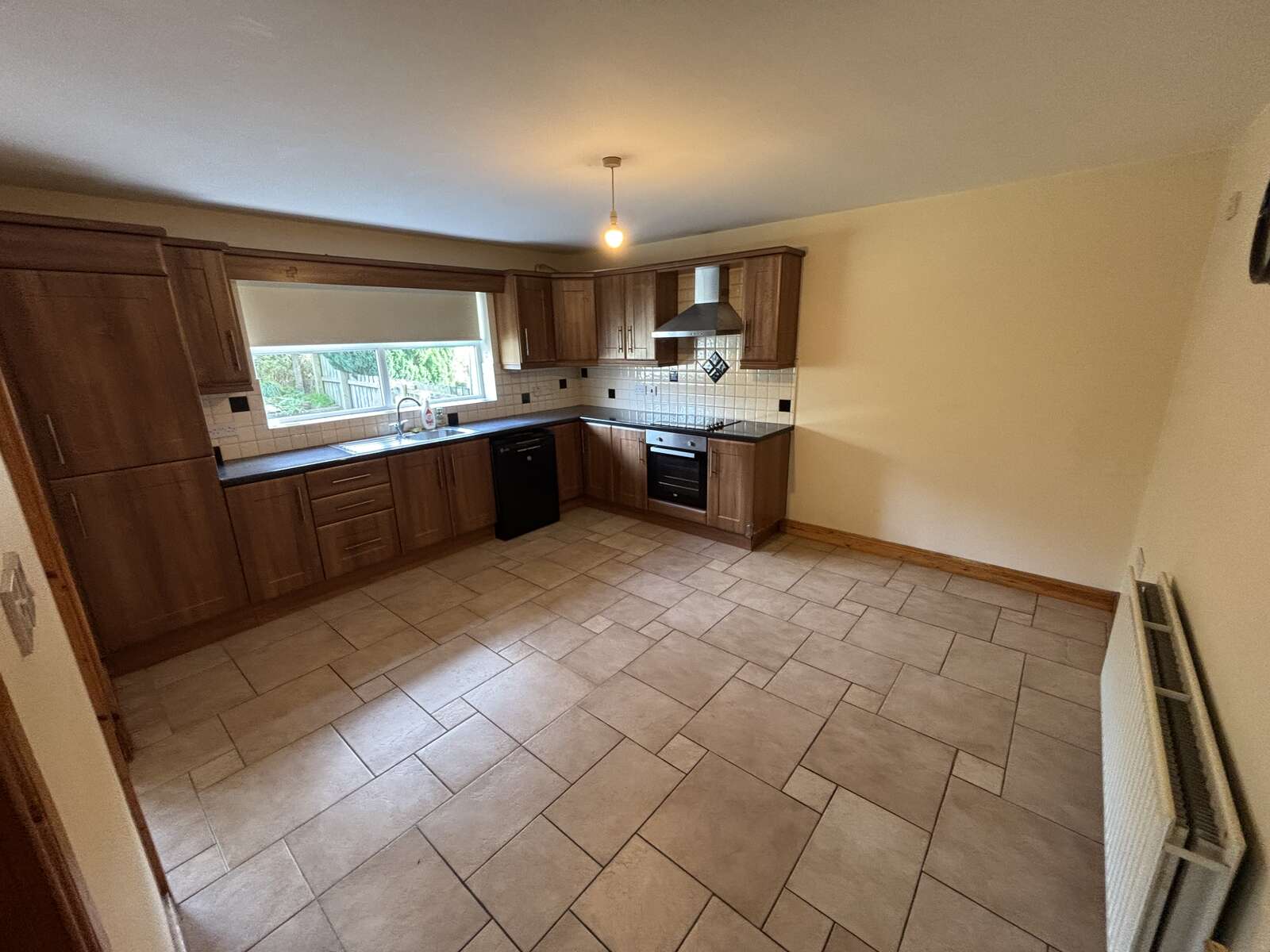 proximity to town centre and local amenities. To the front of the property is a tarmac parking area. Enclosed lawn to the rear. Features include oil heating and white PVC double glazed windows.
