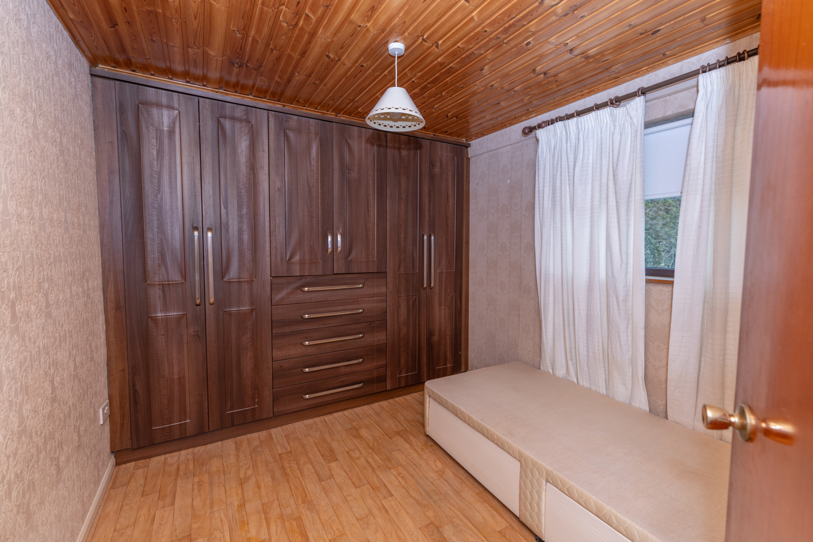Front-facing room with laminate flooring, single radiator, and a built in storage cupboard.