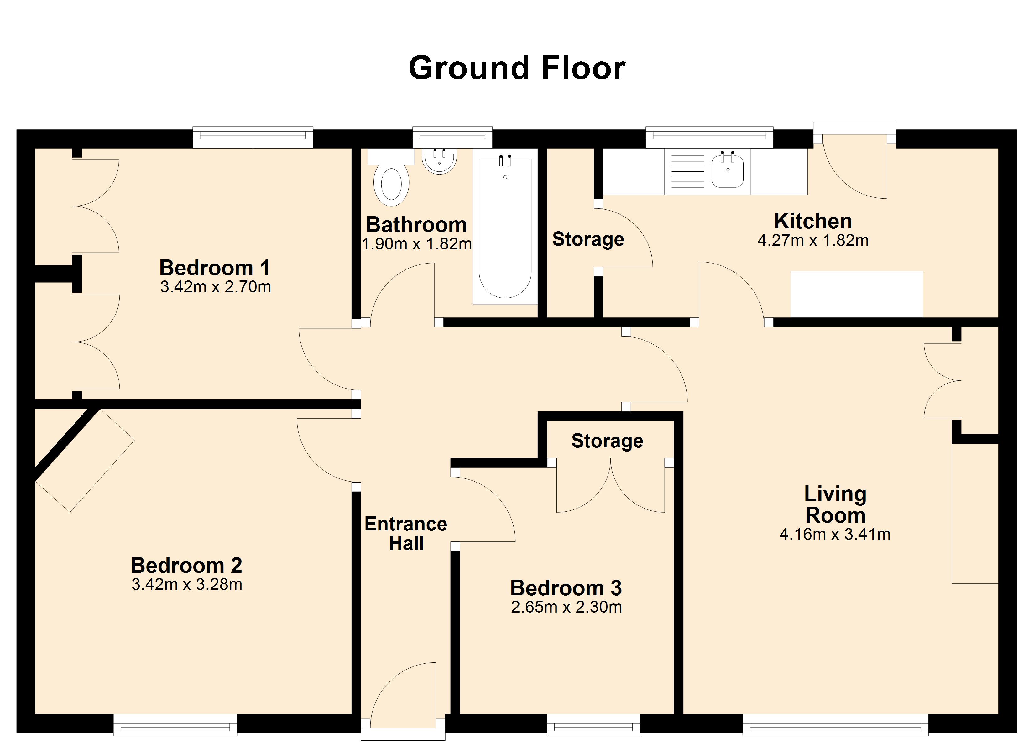 Bedroom 1 11'3" X 8'10" (3.42m X 2.70m)